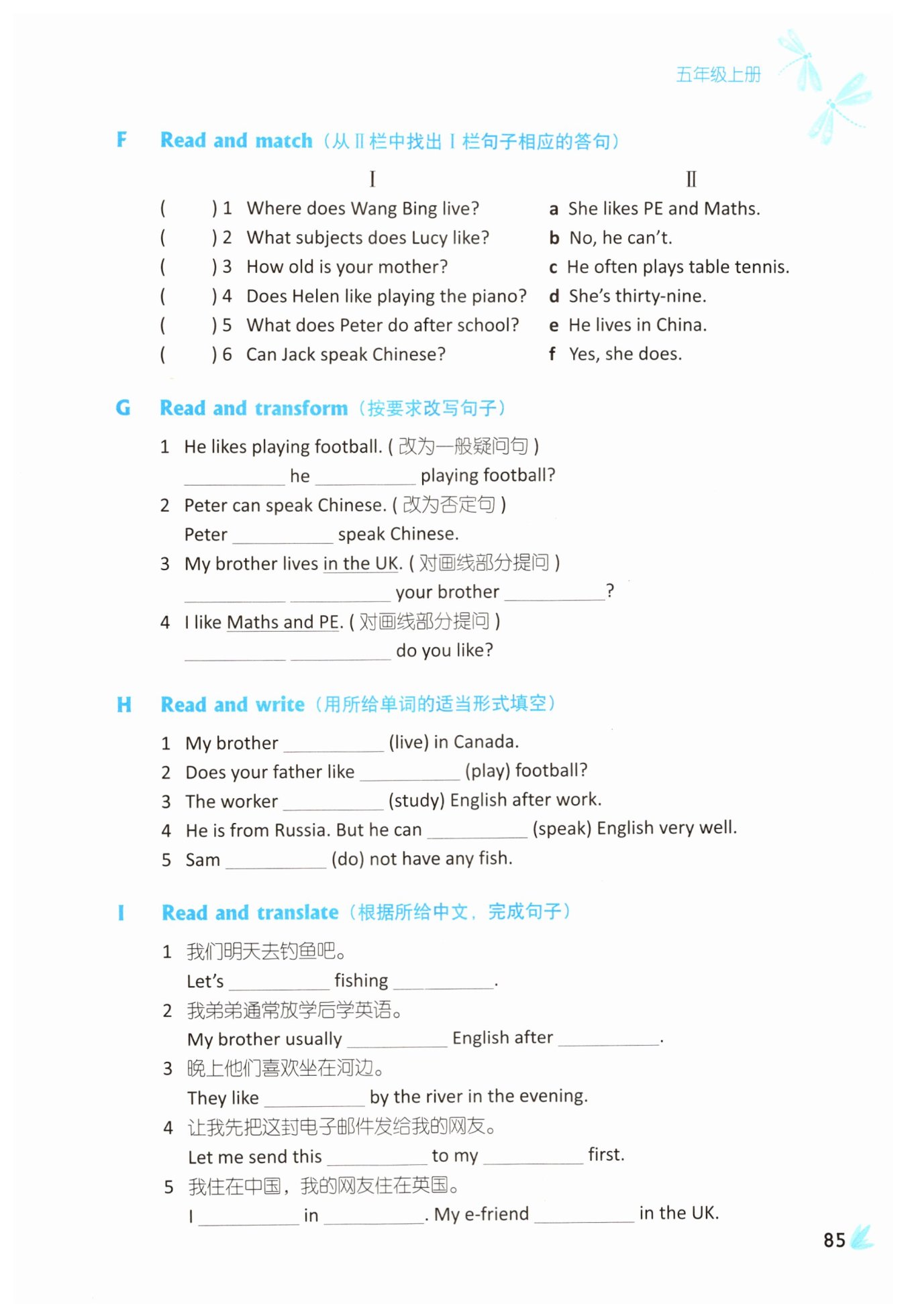 1 go, tomorrow 2 studies, school 3 sitting 4 email, e-friend 5 live, China, lives