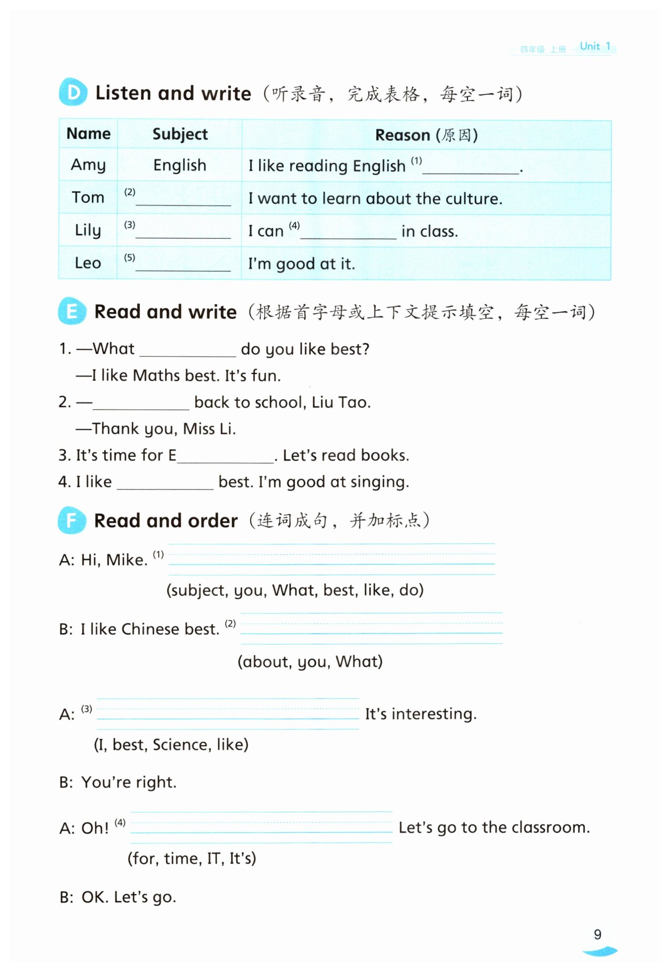 1. What subject do you like best? 2. What about you? 3. I like Science best. 4. It's time for IT.