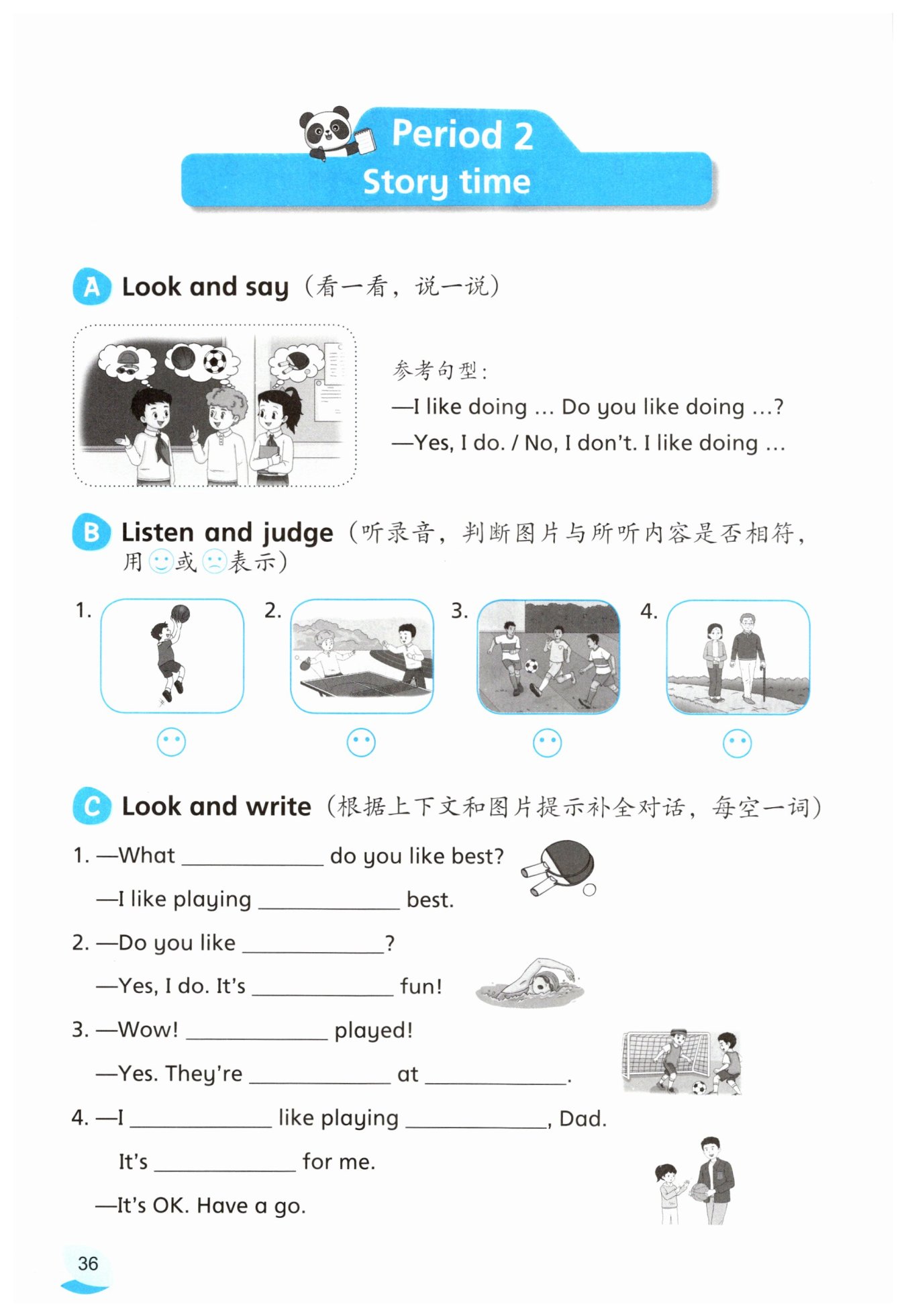 1. sport, ping-pong 2. swimming, great 3. Well, good, football 4. don't, basketball, hard