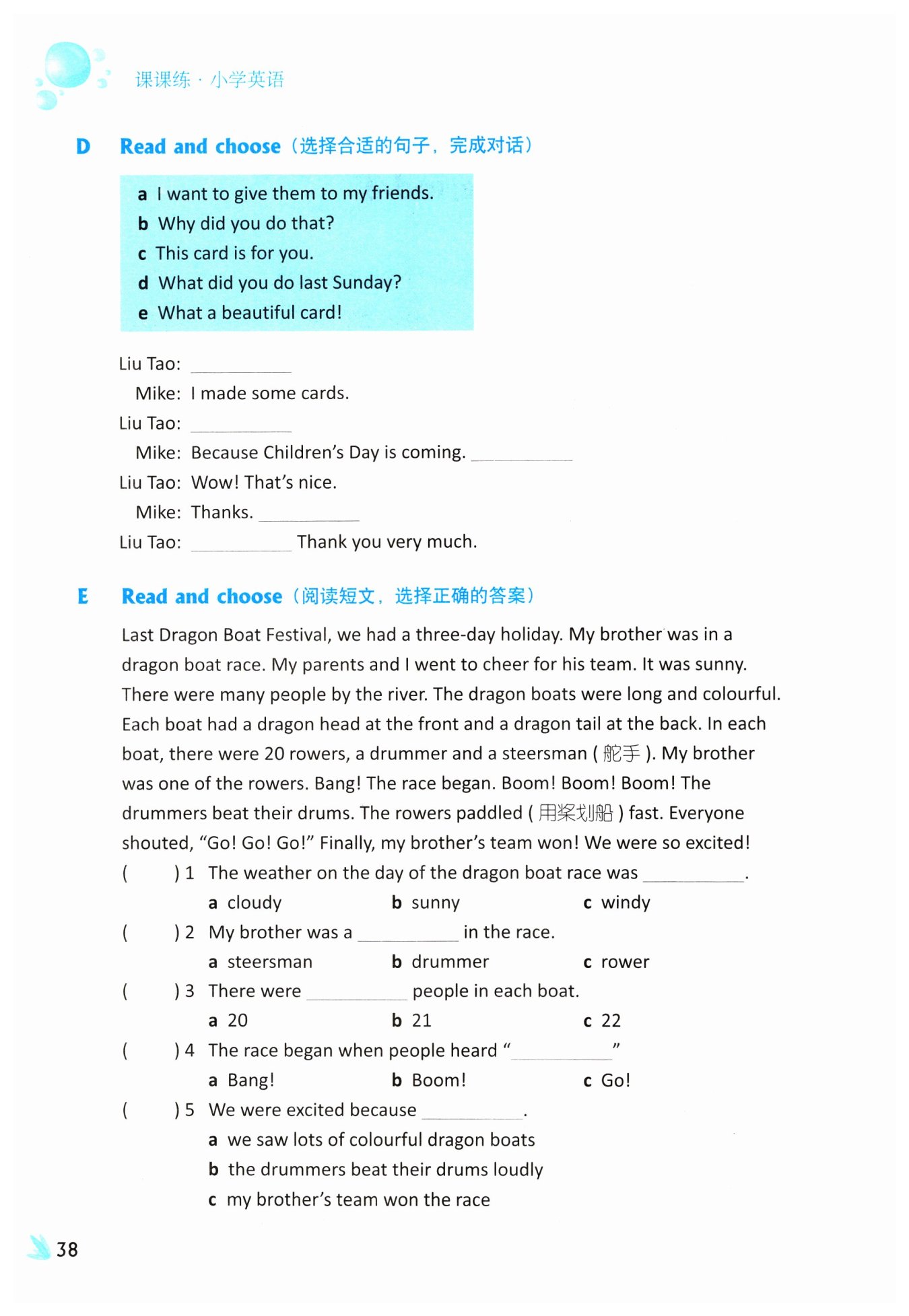最后,Liu Tao對Mike送的卡片表示感謝,并稱贊卡片很漂亮,所以第五個空填e選項。