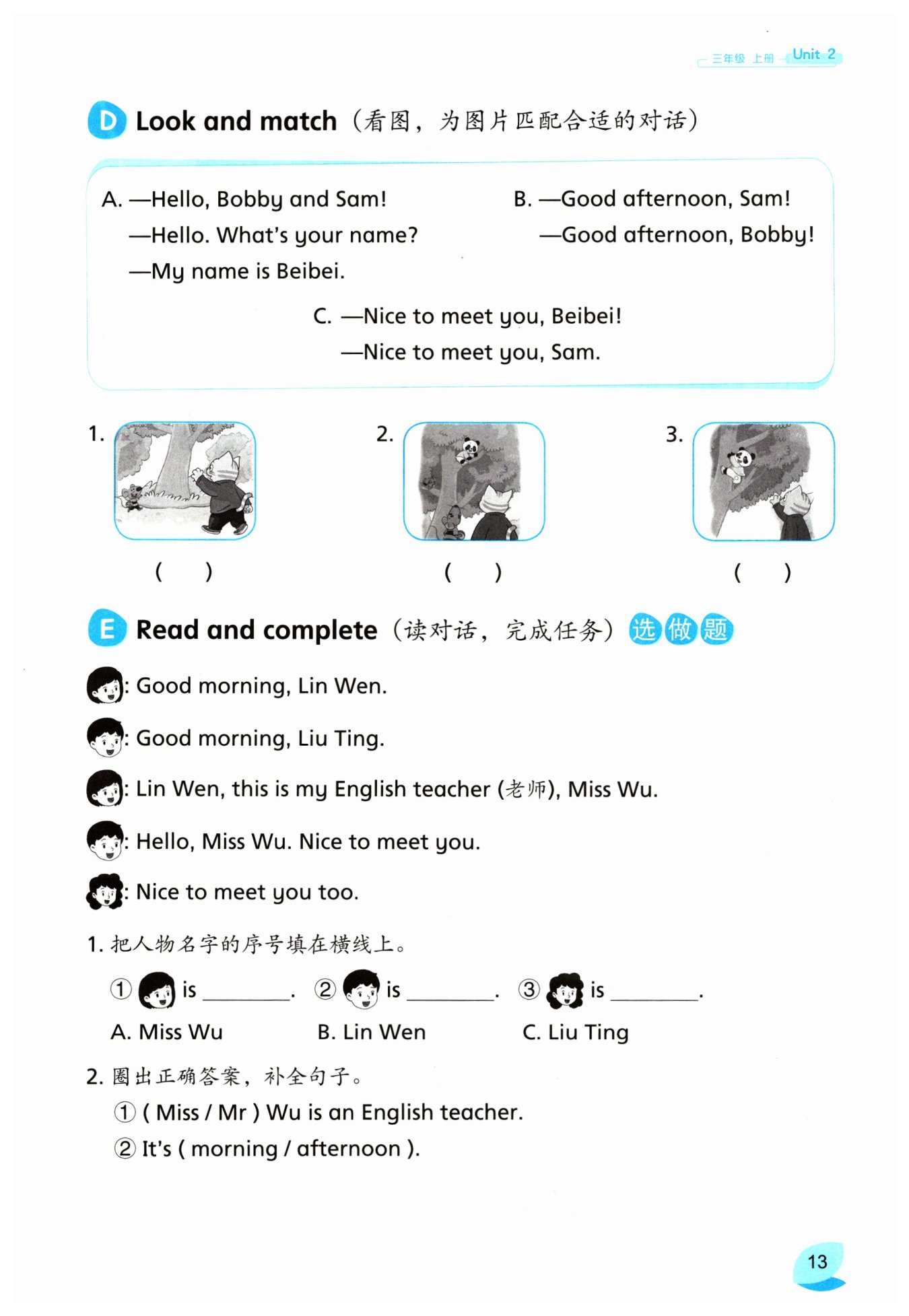 1. ① C ② B ③ A 2. ① Miss ② morning