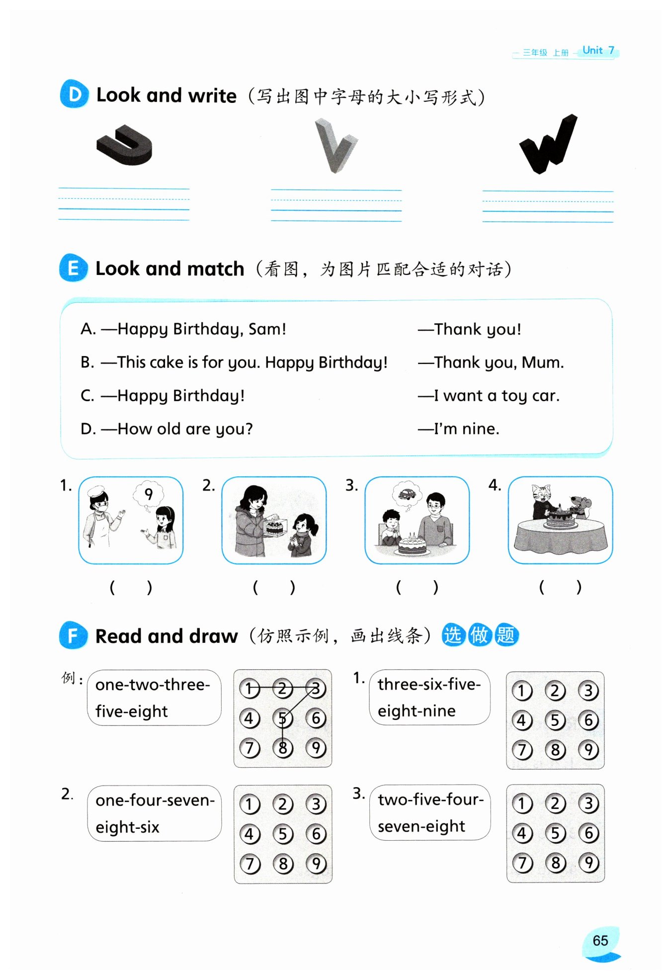 1. 從數(shù)字“three(3)”開始,依次連接“six(6)”“five(5)”“eight(8)”“nine(9)”