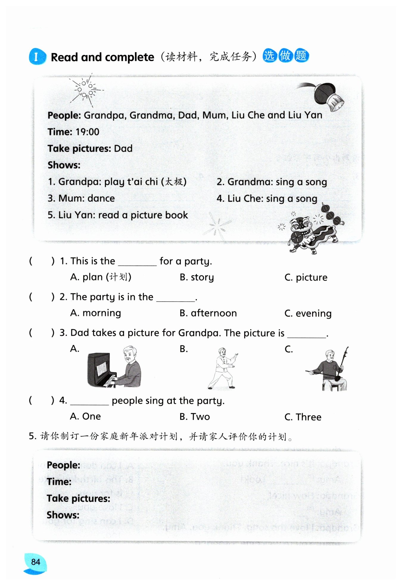 Shows: Dad: play the guitar; Mum: sing a song; me: dance
