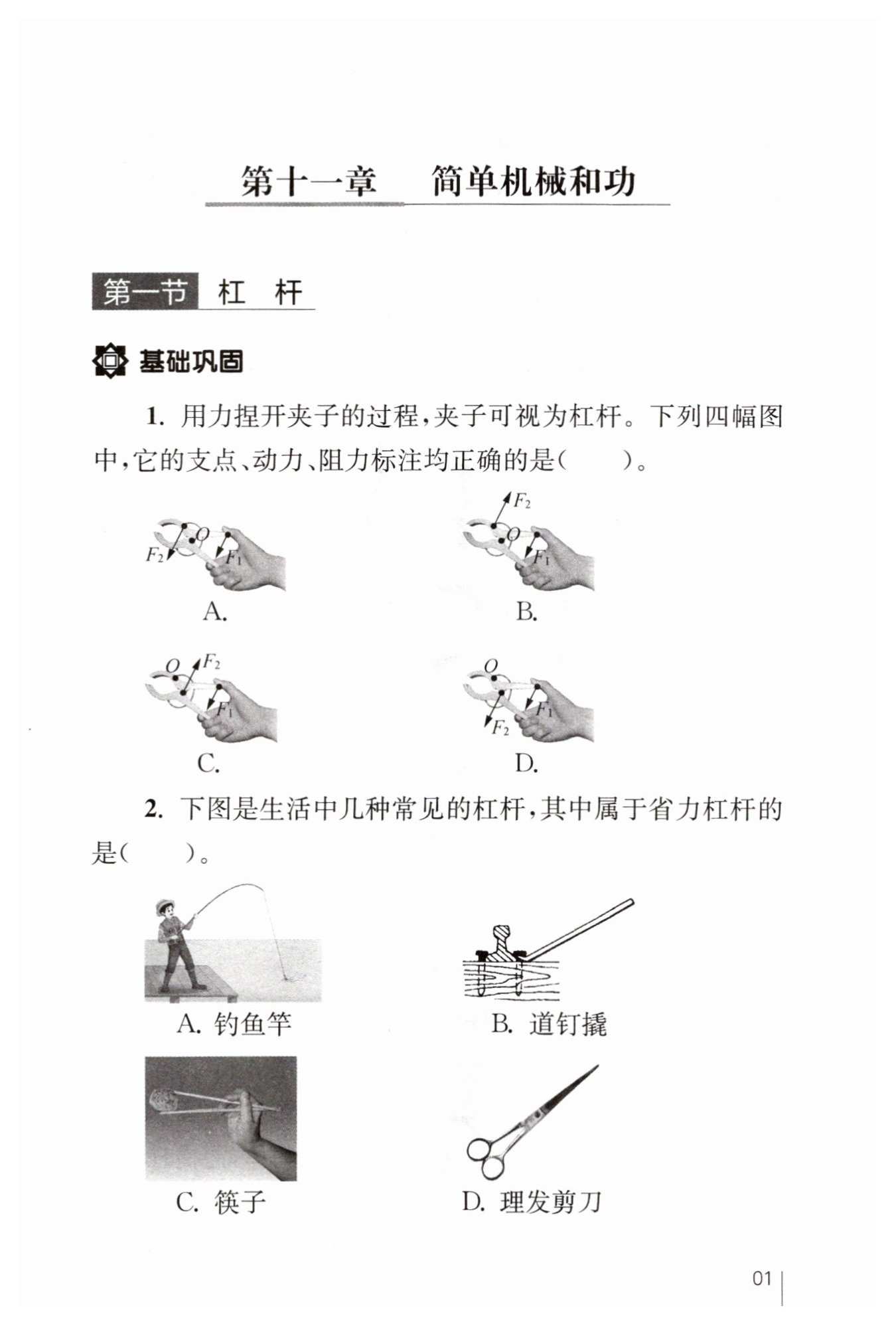 本題考查杠桿的分類,根據(jù)杠桿平衡條件,省力杠桿是動(dòng)力臂大于阻力臂的杠桿,分析各個(gè)選項(xiàng)的杠桿類型: