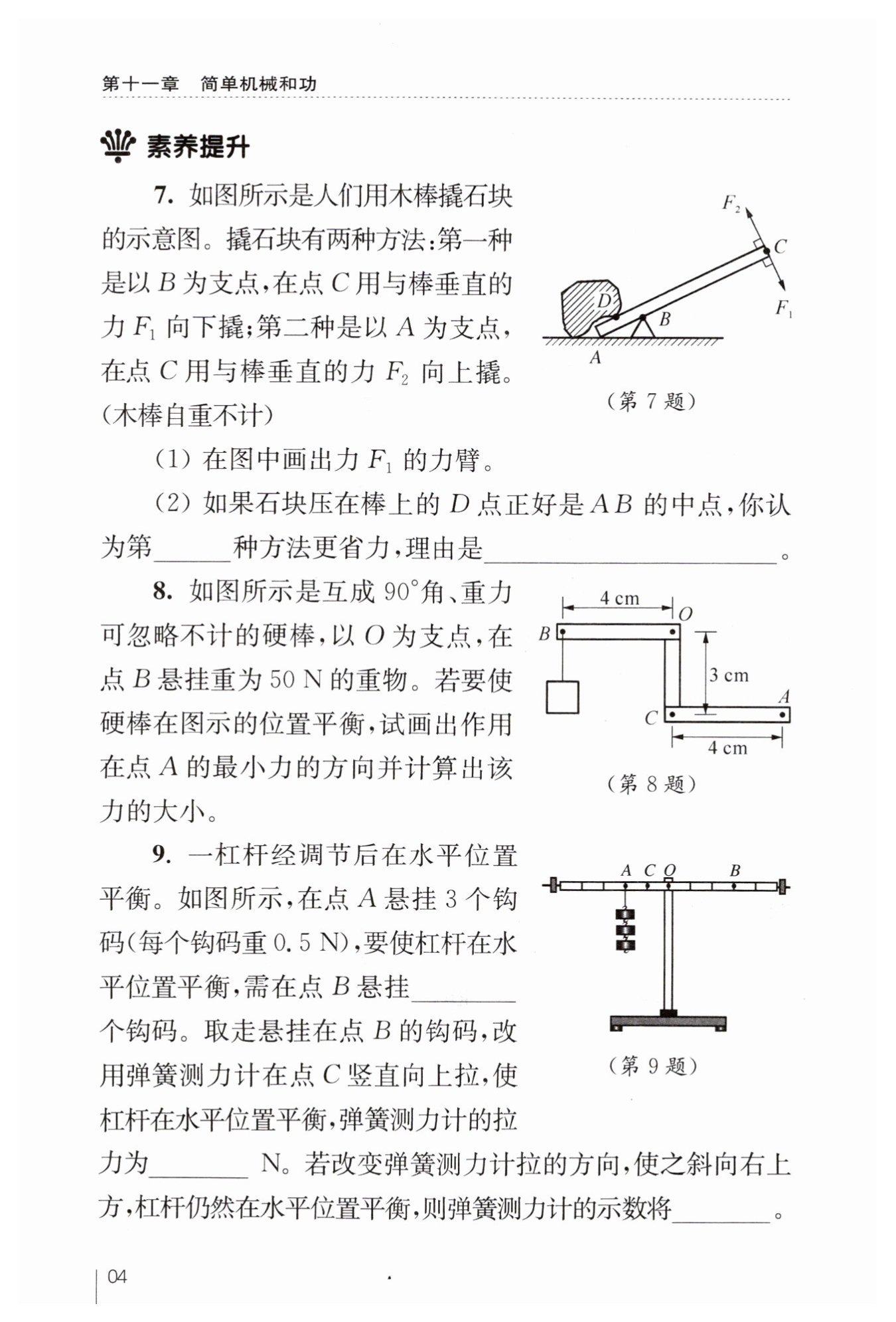 取走B點鉤碼,在C點豎直向上拉,$L_C=1L$,設拉力為F。