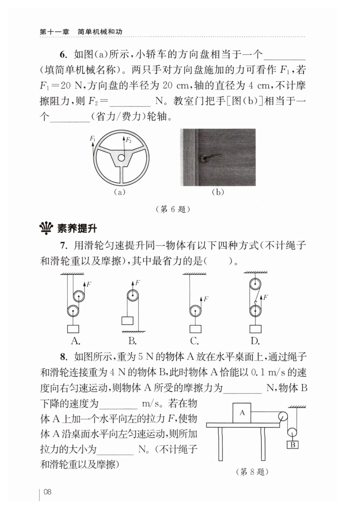 A選項(xiàng)是滑輪組,拉力為物體重力的四分之一。