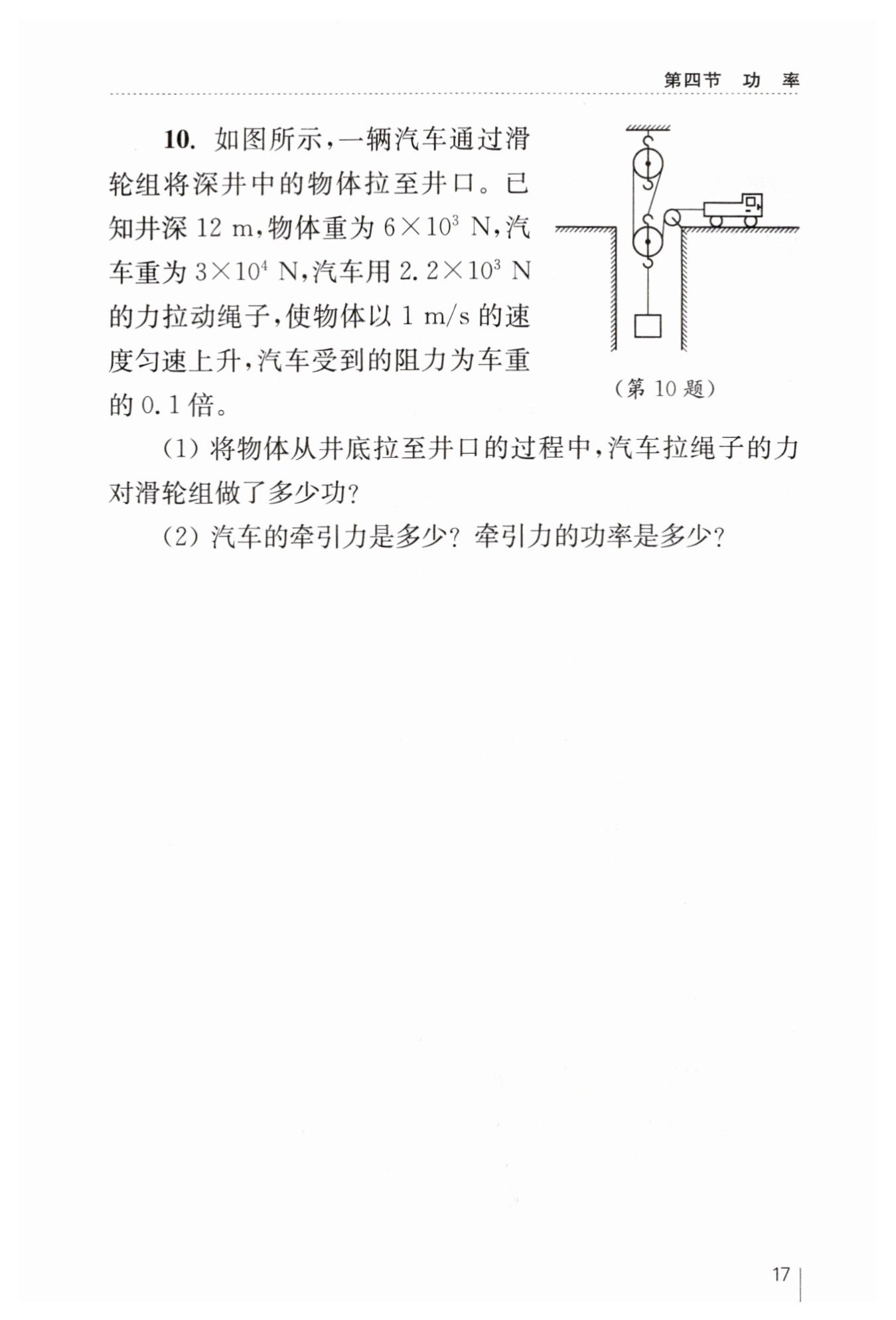 答:(1)汽車?yán)K子的力對(duì)滑輪組做的功為$7.92×10^4J;$(2)汽車的牽引力是$5.2×10^3N,$牽引力的功率是$1.56×10^4W。$