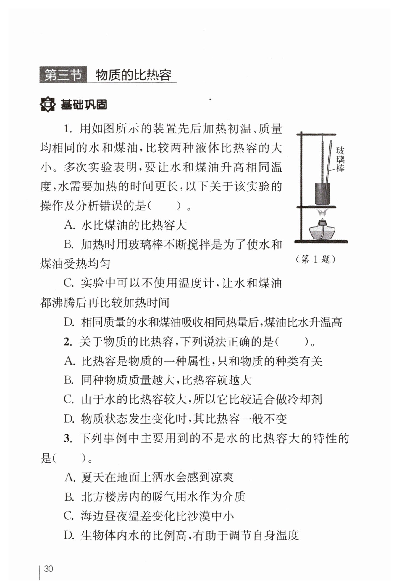 本題主要考查比熱容的概念、熱量的計算以及實驗操作的正確性分析,涉及到控制變量法在實驗中的應(yīng)用。