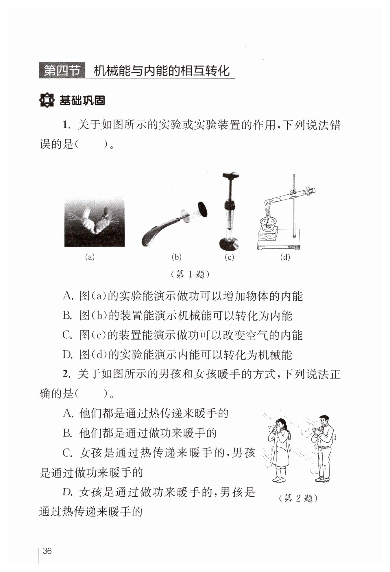 D選項(xiàng):圖(d)中,水蒸氣將塞子沖出,是水蒸氣對塞子做功,將內(nèi)能轉(zhuǎn)化為機(jī)械能,故D正確。