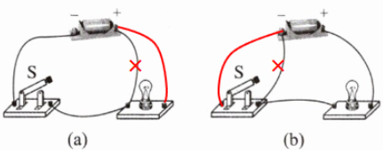 (a)圖:錯(cuò)誤,原因:開關(guān)閉合后造成電源短路。 (b)圖:錯(cuò)誤,原因:開關(guān)沒有接入電路。 (c)圖:正確。