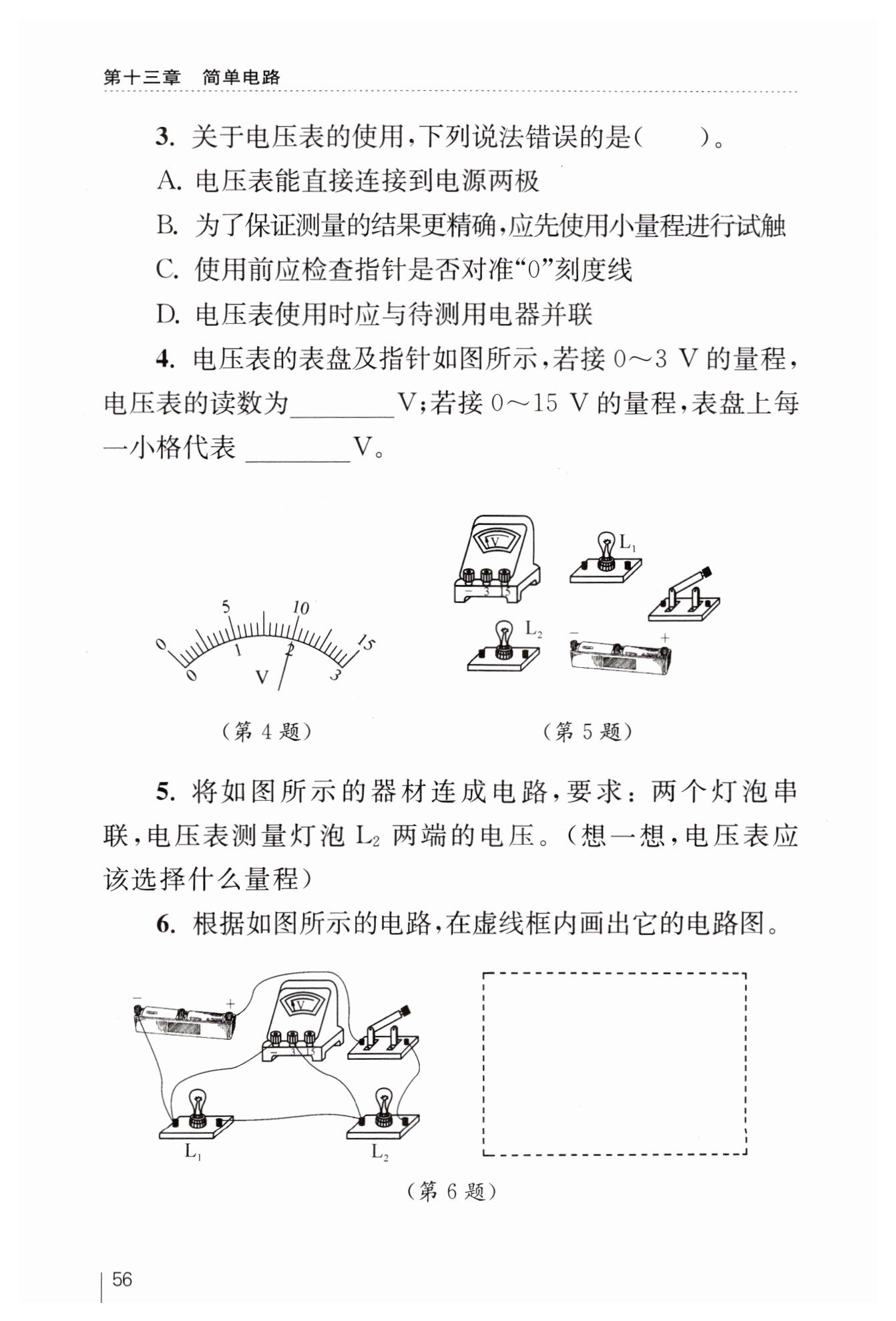 D選項:電壓表在使用時,要與被測的用電器并聯(lián),故D正確。