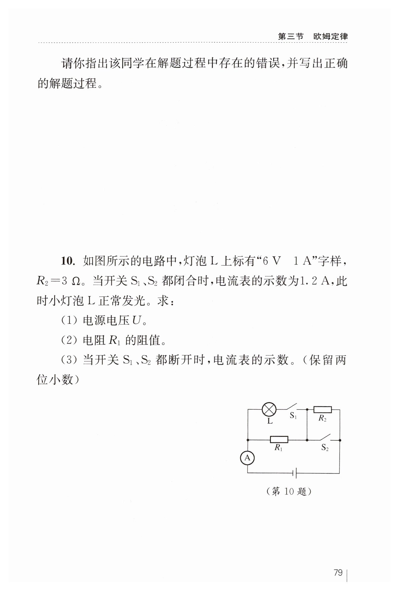 (3) 解:當(dāng)開關(guān)$S_{1}$、$S_{2}$都斷開時(shí),$R_{1}$與$R_{2}$串聯(lián),電流表測(cè)電路電流。