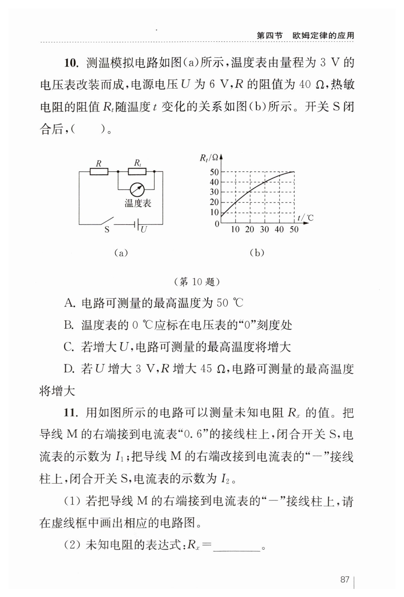 D. U增大3V后U''=9V,R增大45Ω后R''=85Ω,I''=(U''-U?max)/R''=(9V-3V)/85Ω=6/85A,R?''=U?max/I''=3V/(6/85A)=42.5Ω。由圖(b),R?增大時t升高,42.5Ω>40Ω,故t增大,D正確。
