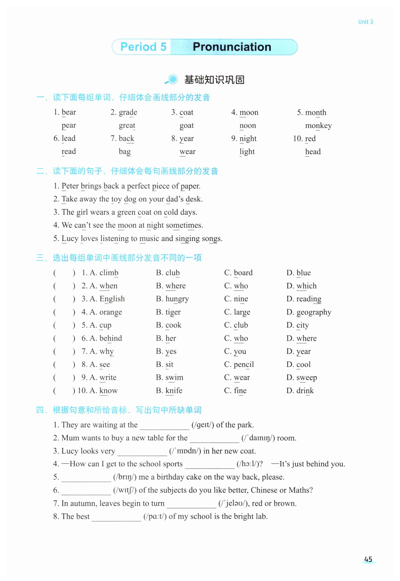 三、選出每組單詞中畫線部分發(fā)音不同的一項