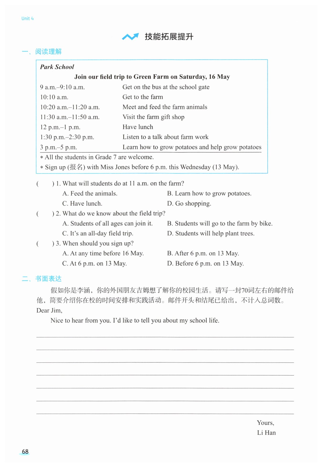 my classmates for an hour. On Wednesday, I go to the music club. I enjoy my school life very