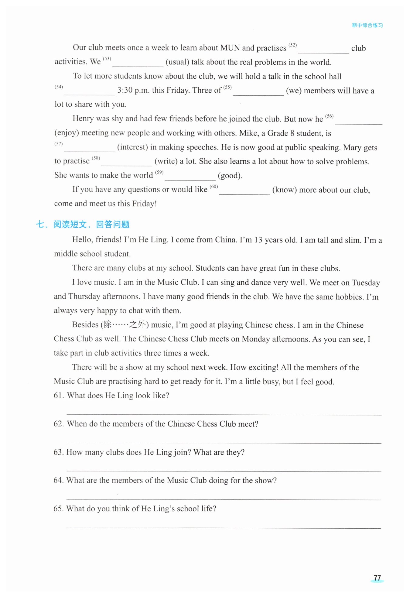 63. She joins two clubs. They are the Music Club and the Chinese Chess Club.