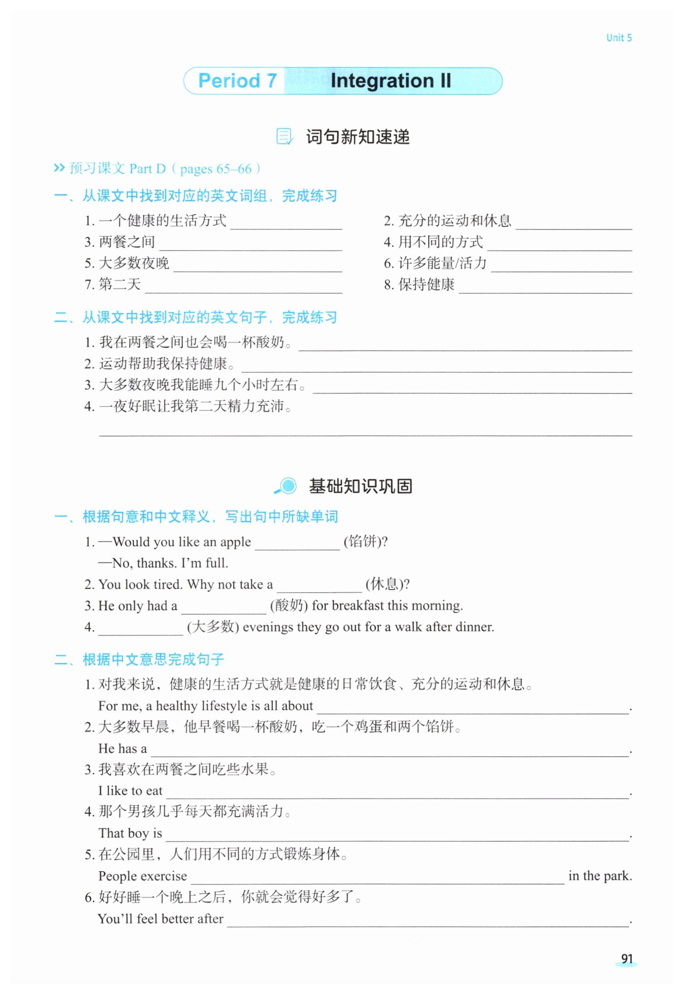 1. 第一題,根據(jù)中文“對我來說,健康的生活方式就是健康的日常飲食、充分的運動和休息?!?,我們需要找到表達“健康的日常飲食、充分的運動和休息”的英文詞匯,并將其組合成一個完整的名詞短語作為賓語。