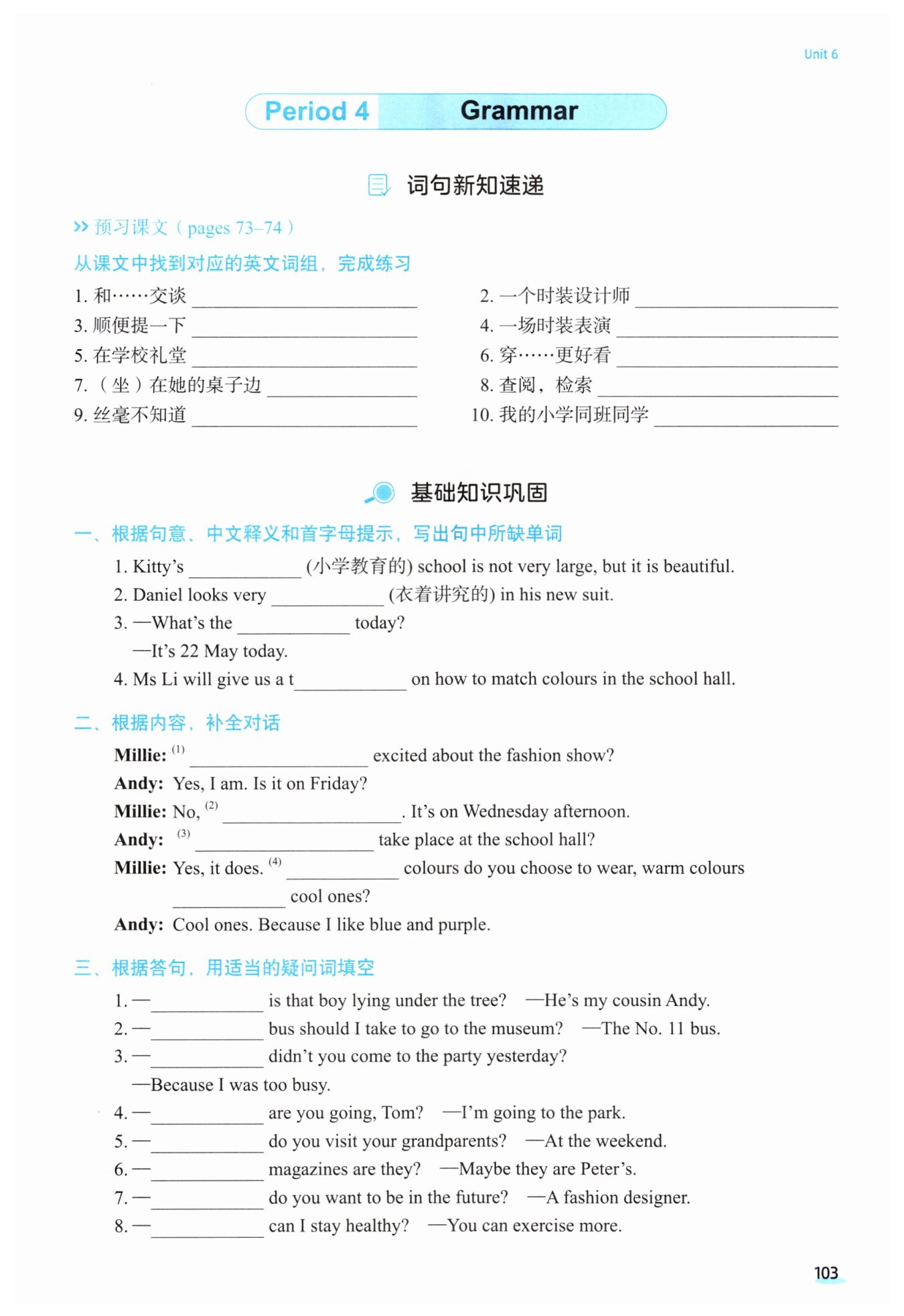 5. 第五個(gè)問(wèn)題的答句是“At the weekend.”,問(wèn)句詢問(wèn)的是什么時(shí)候去看望祖父母,因此使用疑問(wèn)詞"When"。