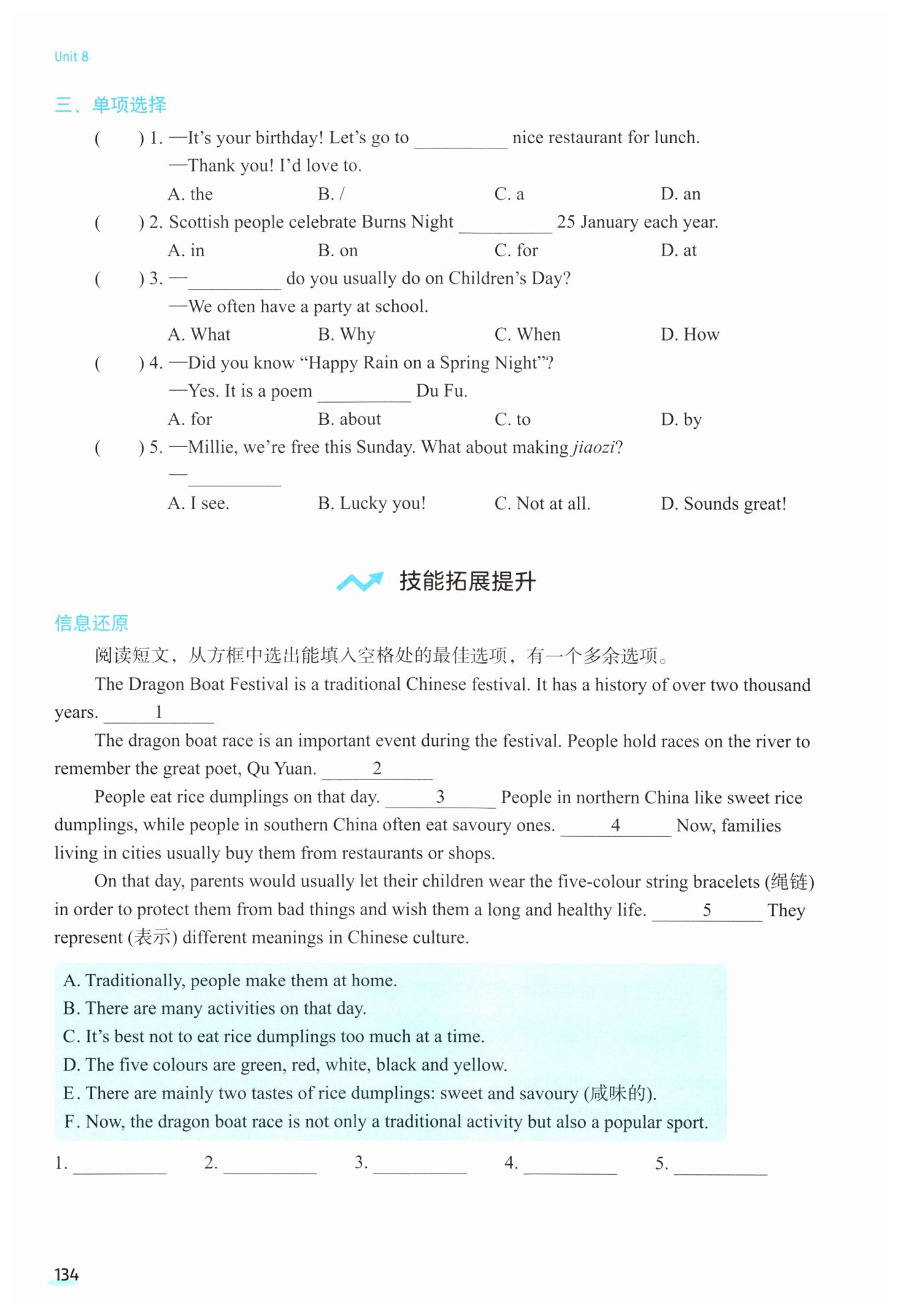 這是一道英語日常交際用語的題目,考查的是對提出建議的回應(yīng)。題目中的句子“What about making jiaozi?”是一個提出建議的句型,詢問對方對于做餃子的看法或意見。我們需要從選項中找出一個合適的回應(yīng)。