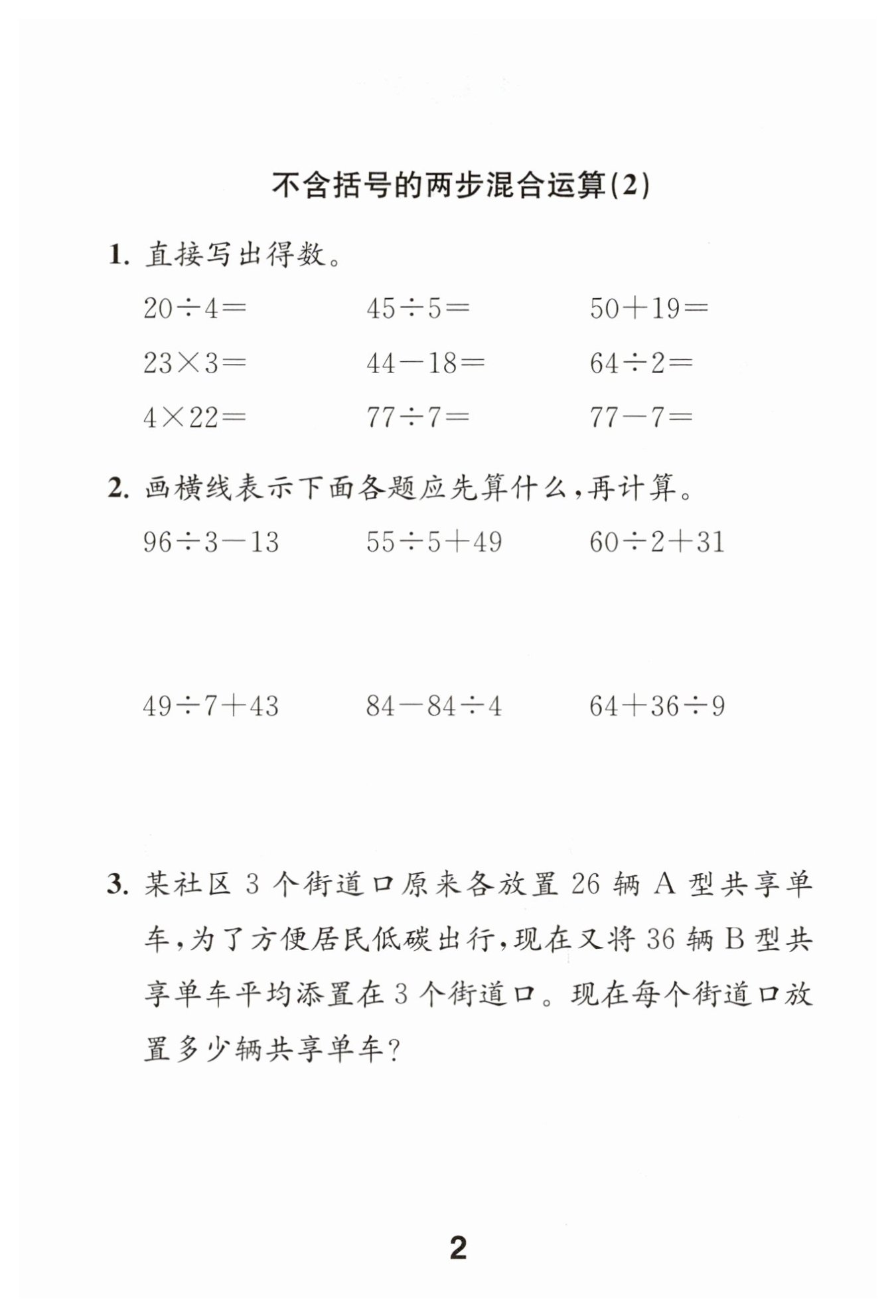 可先求出B型共享單車平均每個(gè)街道口放置的數(shù)量,再加上原來每個(gè)街道口A型共享單車的數(shù)量,即可得到現(xiàn)在每個(gè)街道口放置共享單車的總數(shù)。
