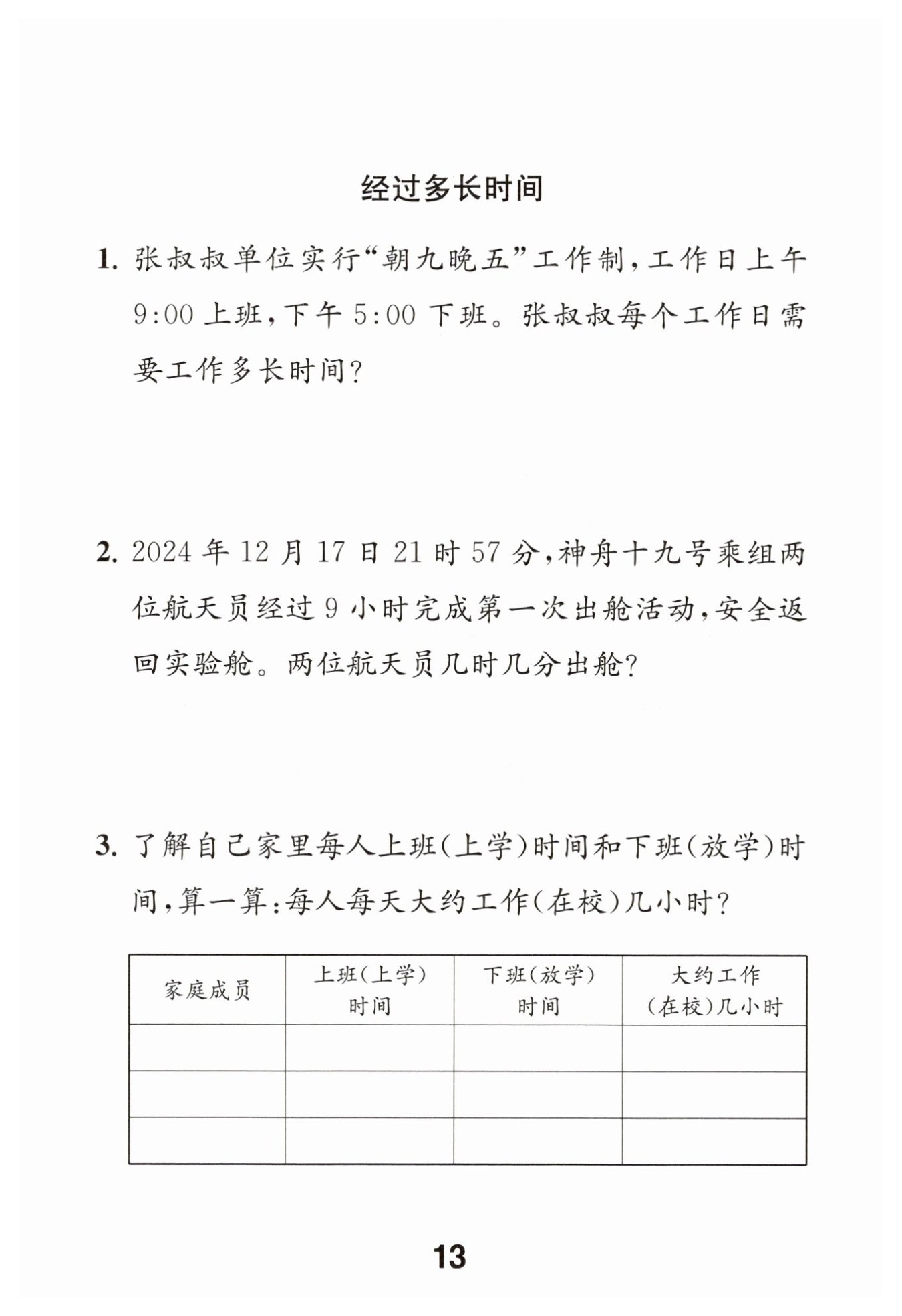 最后,把上午和下午的時間段加起來就是張叔叔每個工作日的工作時間:3 + 5 = 8(小時)。