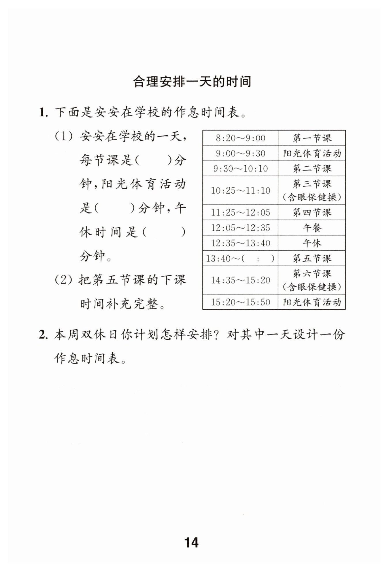 周六作息時(shí)間表:
