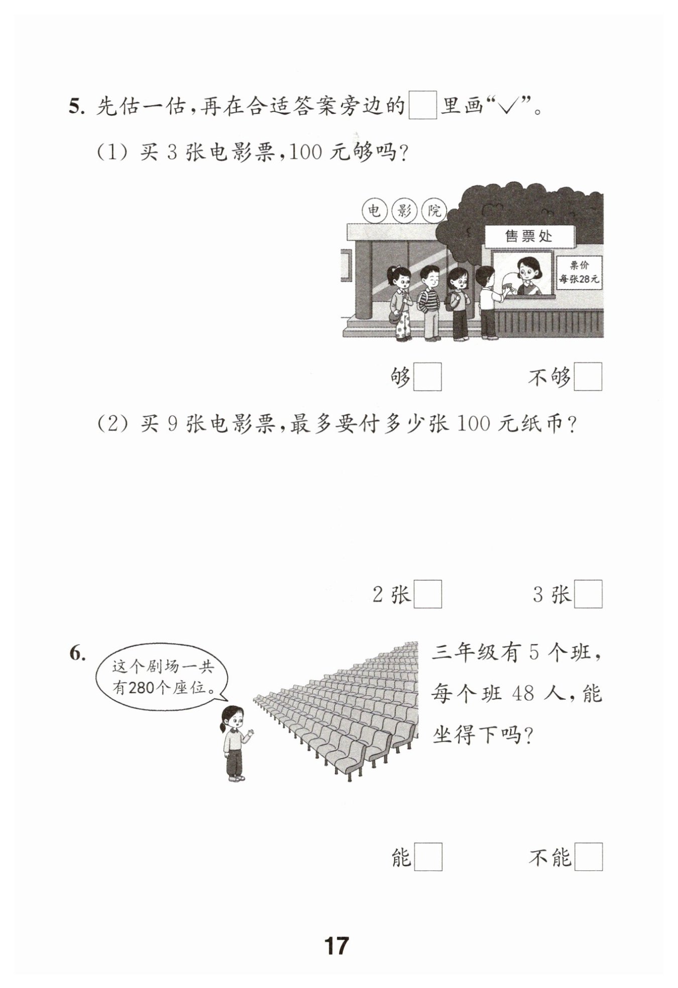 9張票的總價為$28×9,$估算為$30×9 = 270$元,$270÷100 = 2\cdots\cdots70,$所以最多需要付3張100元紙幣。