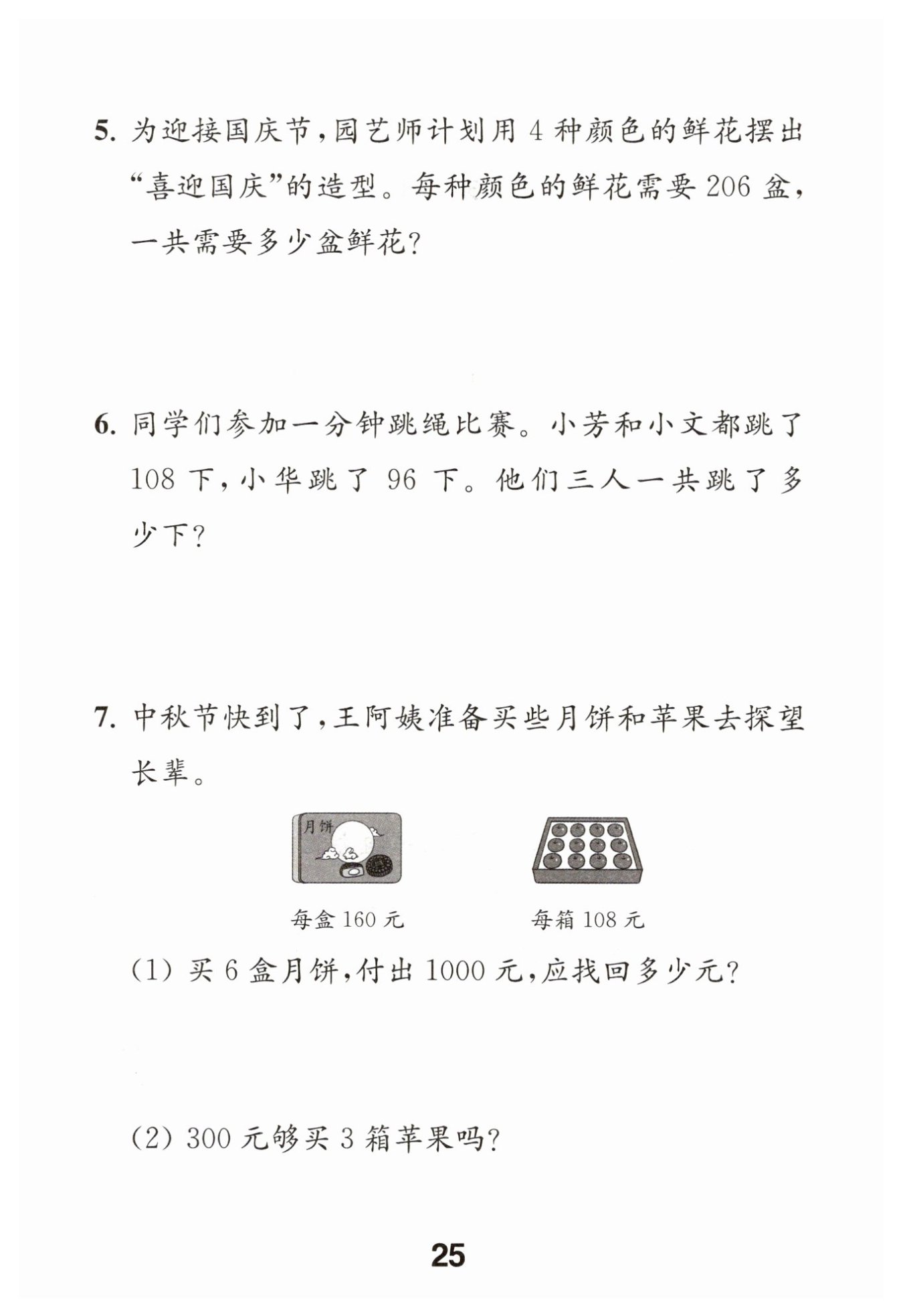 $3箱蘋果的總價= 3 × 108 = 324(元)$