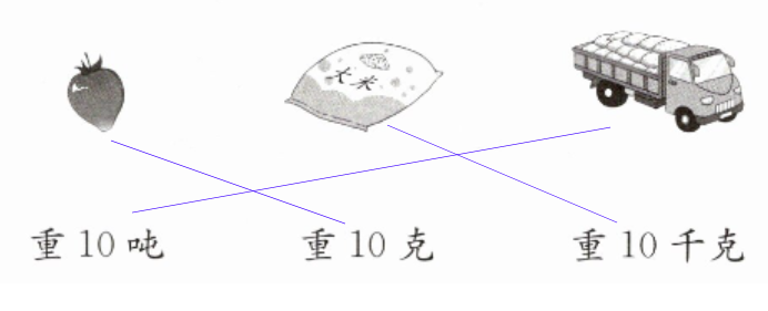 綜上,草莓連重$10$克;大米連重$10$千克;卡車(chē)連重$10$噸。