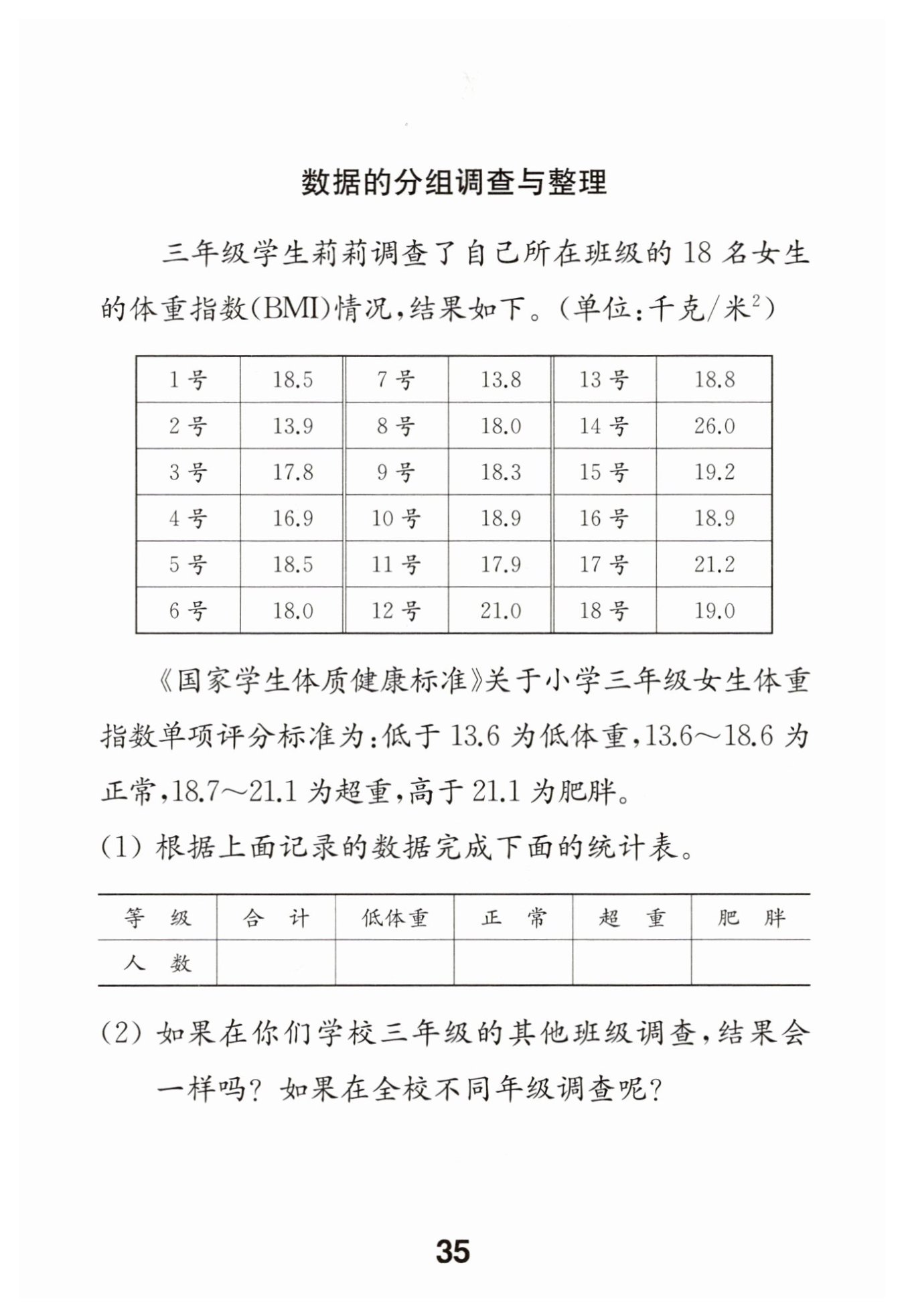 在學(xué)校三年級(jí)其他班級(jí)調(diào)查,結(jié)果可能不一樣;在全校不同年級(jí)調(diào)查,結(jié)果也可能不一樣。