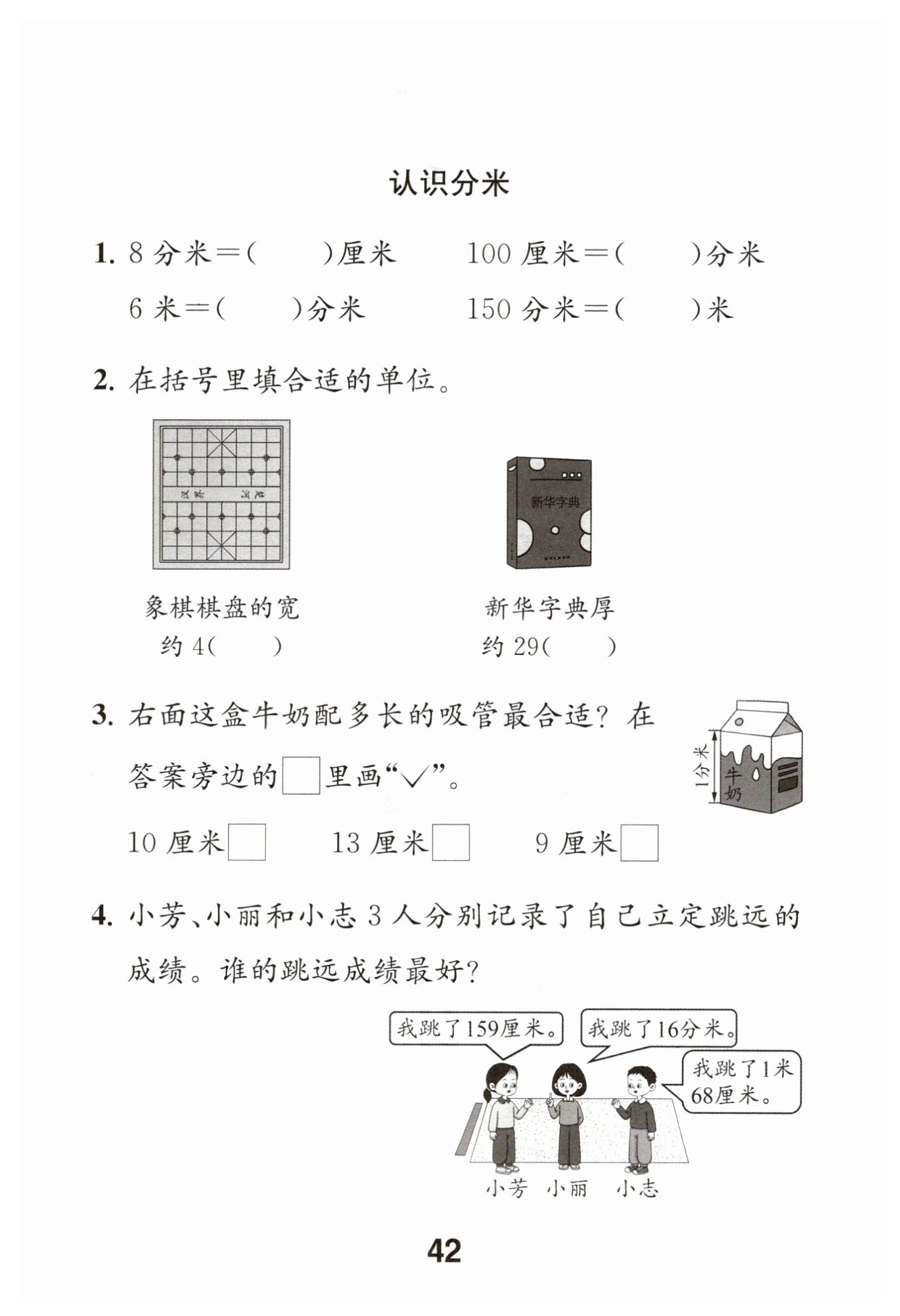 由圖可知牛奶盒高1分米,因?yàn)?分米 = 10厘米,但吸管需要有一定的長度余量來方便飲用,所以10厘米不太合適;9厘米比10厘米還短,也不合適;13厘米比10厘米長一些,能較好地滿足使用需求。