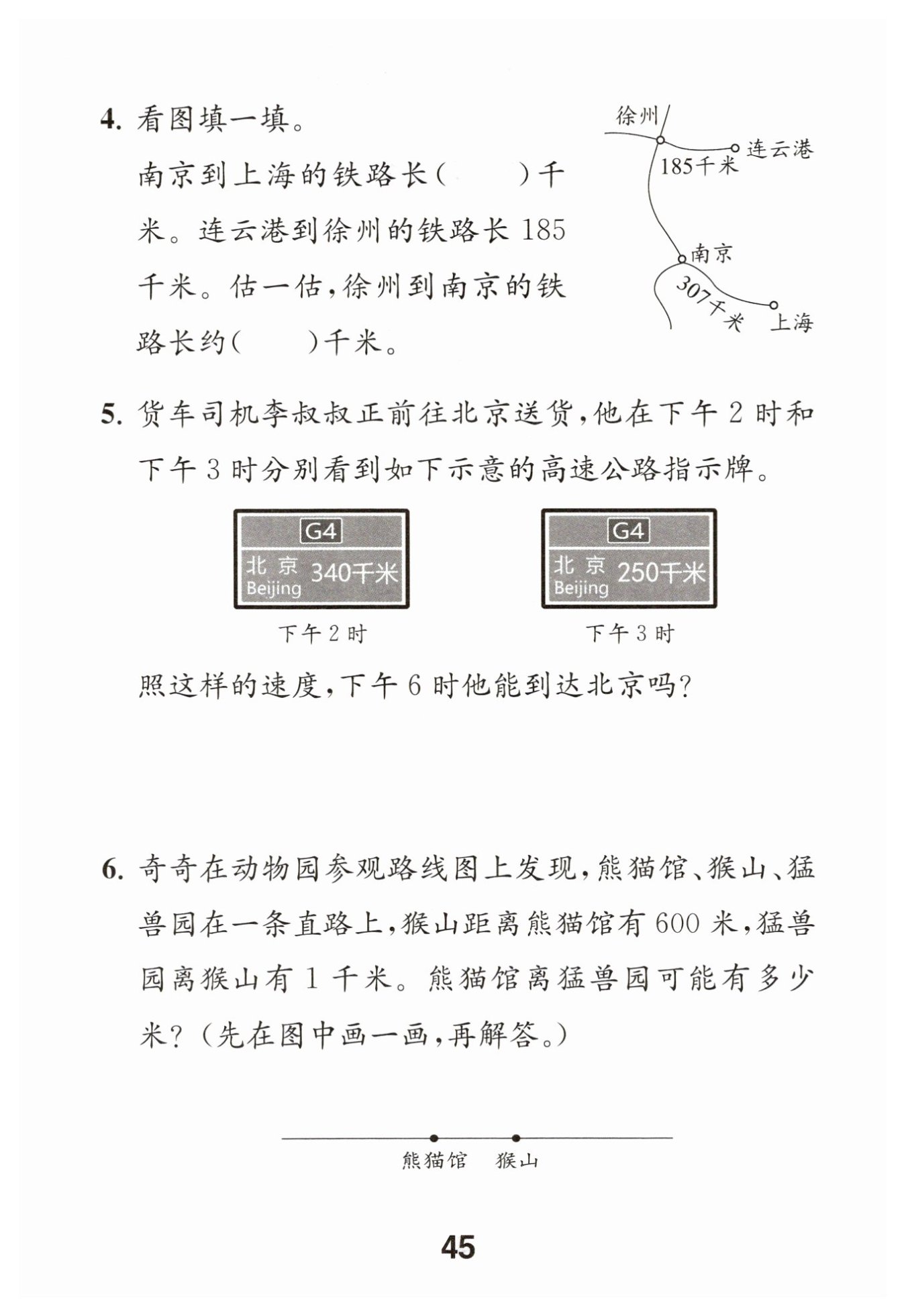 下午2時(shí)指示牌顯示距離北京340千米,下午3時(shí)顯示距離北京250千米。從下午2時(shí)到下午3時(shí)共經(jīng)過1小時(shí),行駛路程為: