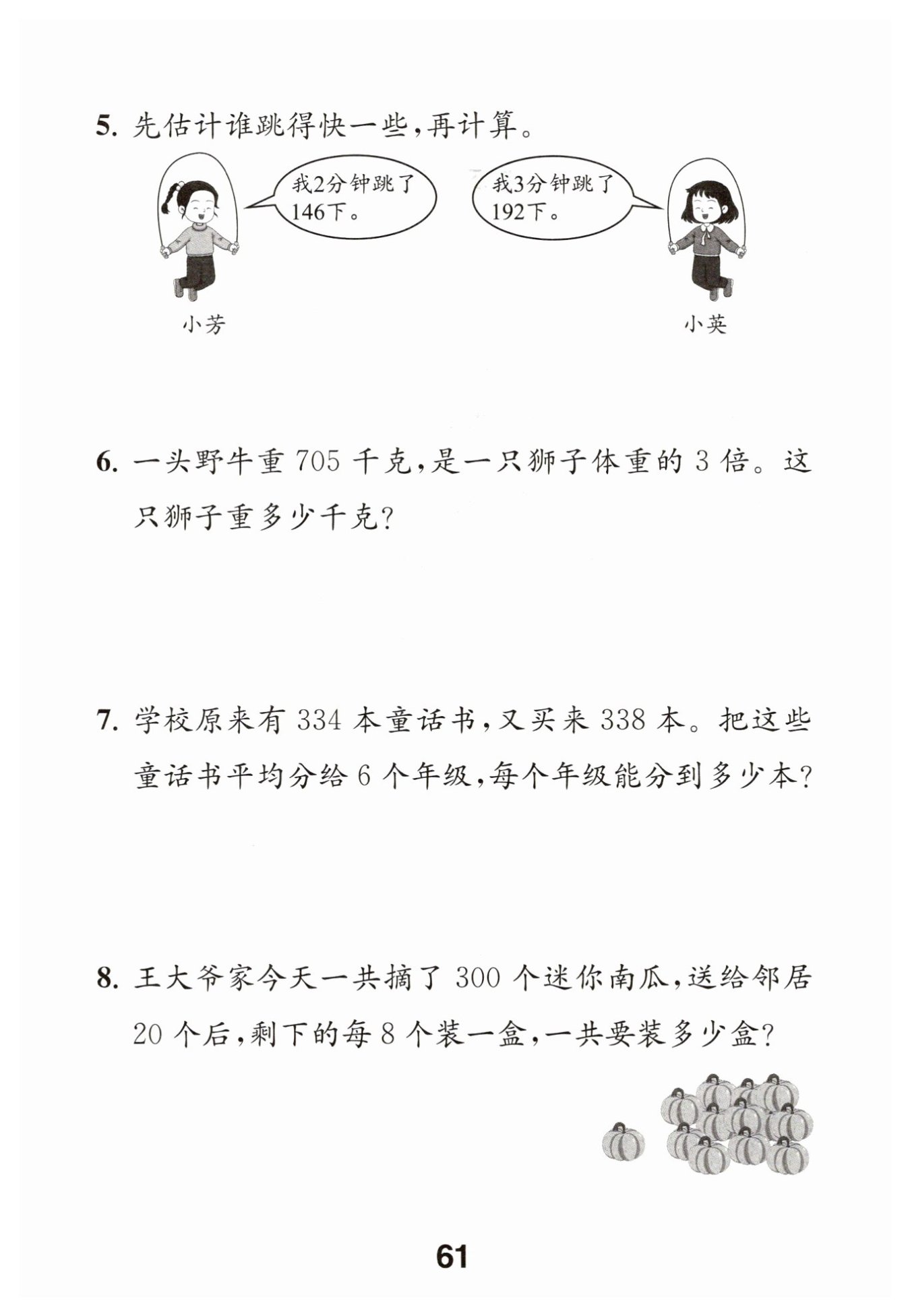 小英每分鐘跳的次數(shù)為$192\div3 = 64$(下)。