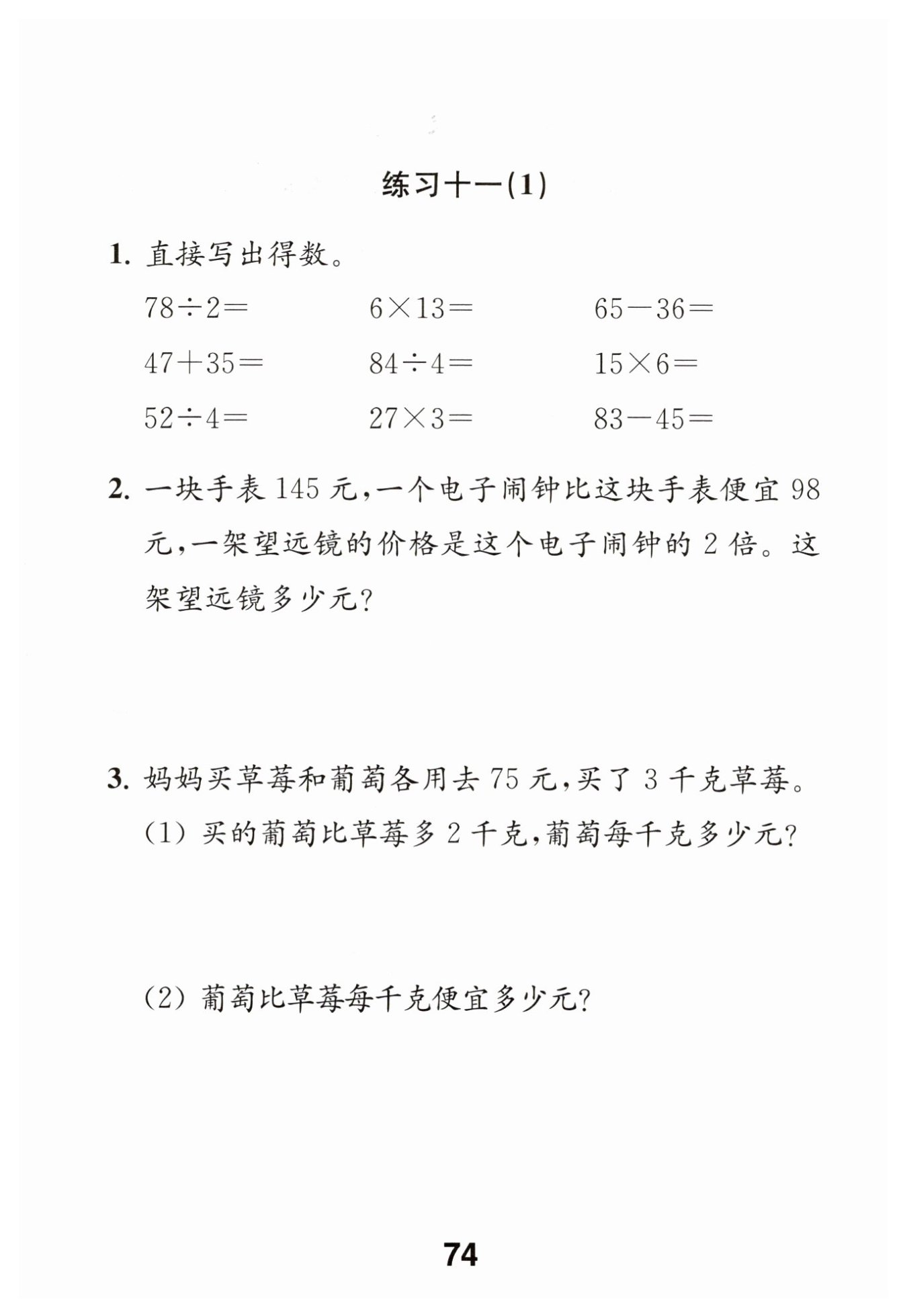 (2)草莓每千克的價格:75 ÷ 3 = 25(元)