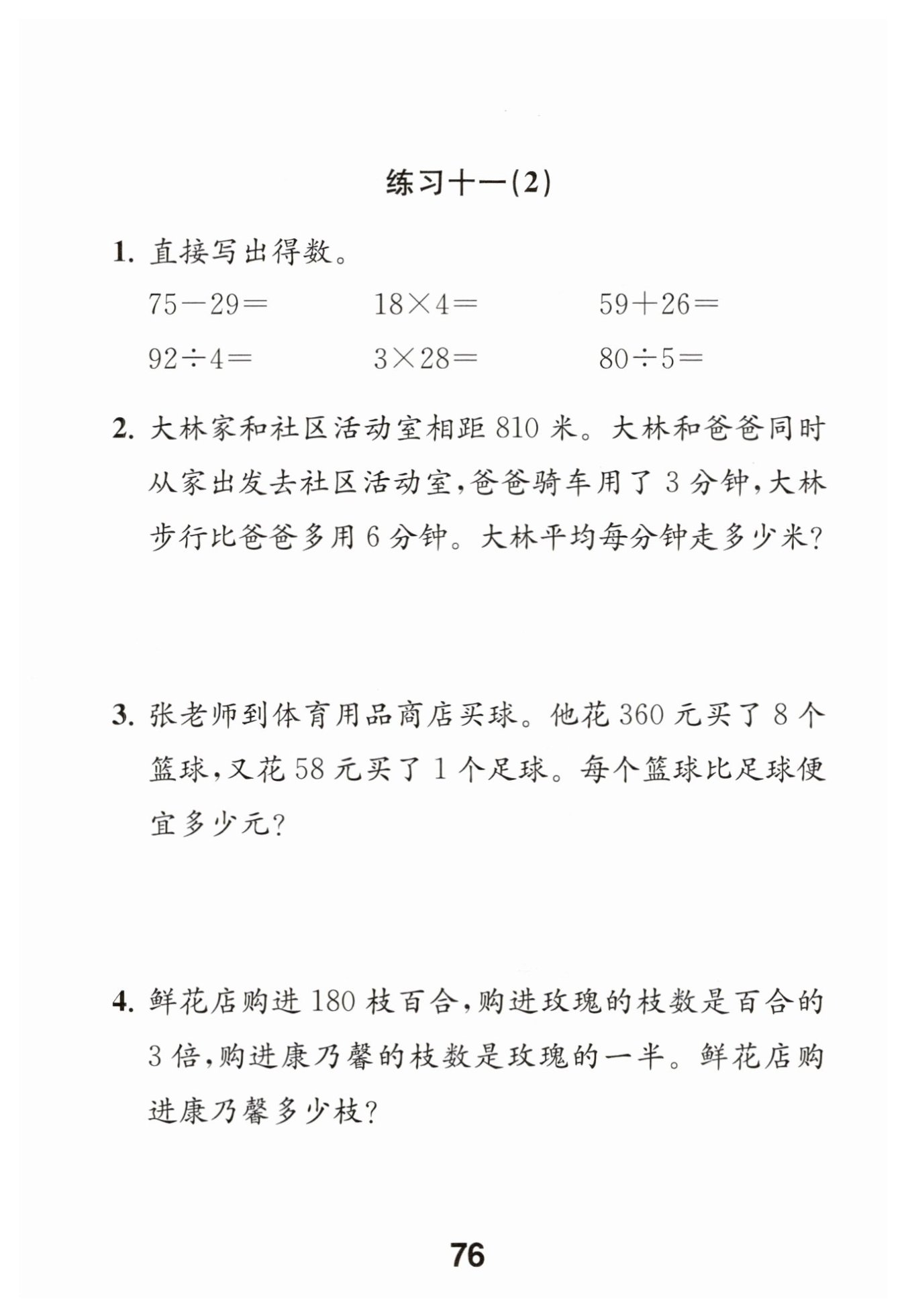 玫瑰的枝數(shù)為: $180 × 3 = 540$(枝)。