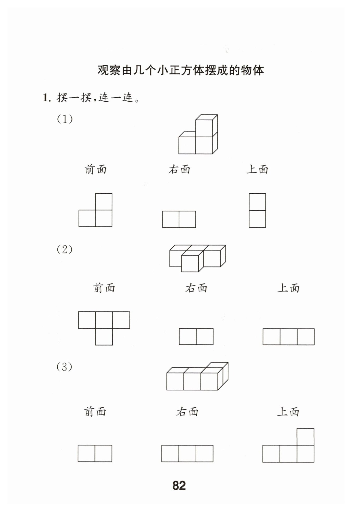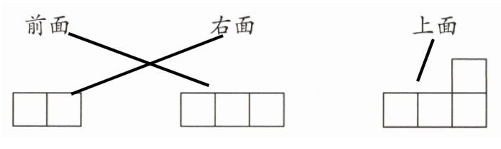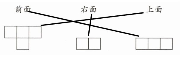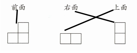 故答案為:前面連第一個圖形,右面連第二個圖形,上面連第三個圖形。