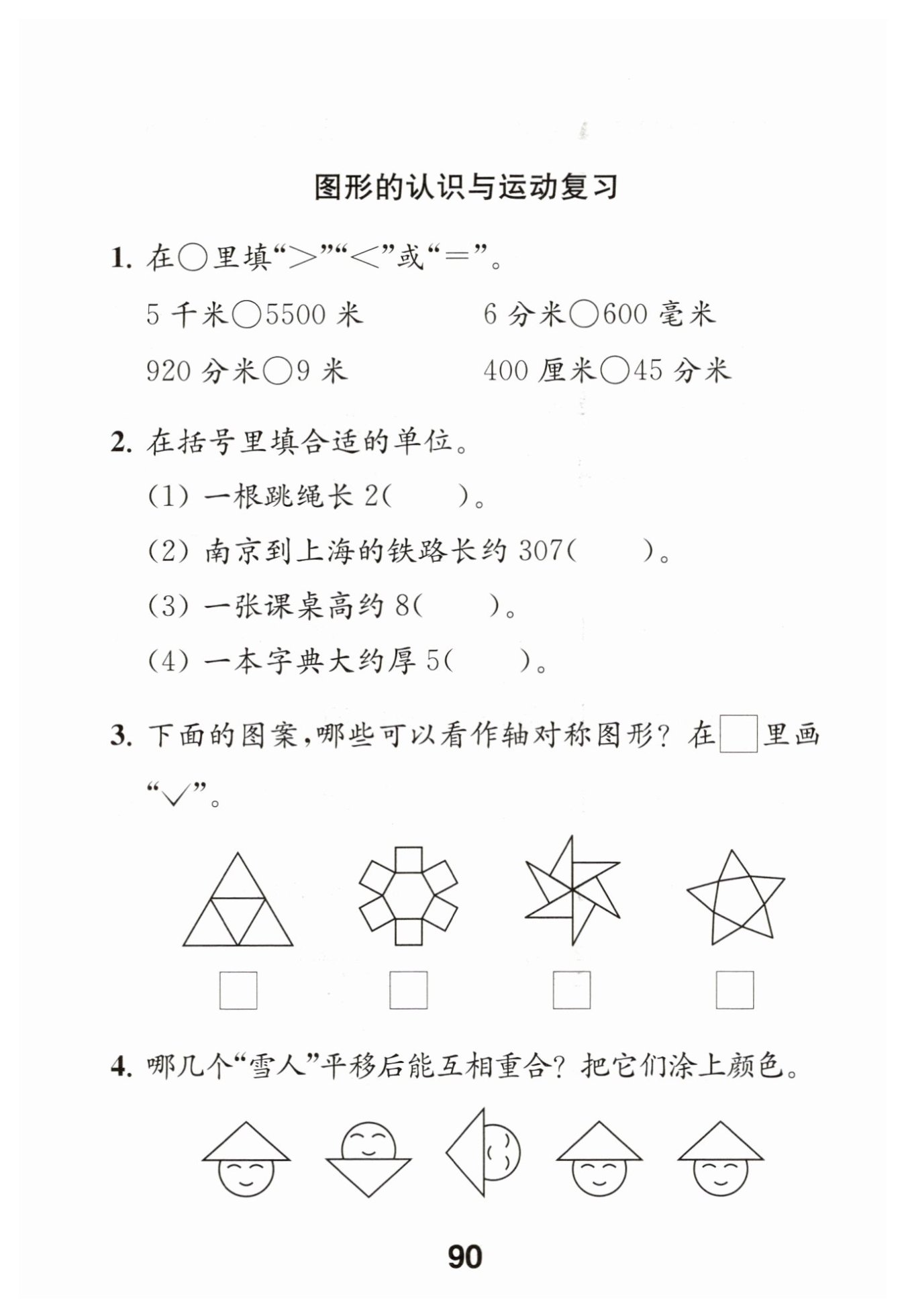 答案:第一個圖形:沿著從三角形每個頂點向?qū)呏悬c連接的直線對折,直線兩側(cè)的部分能夠完全重合,是軸對稱圖形,在對應(yīng)的□里畫“√”。