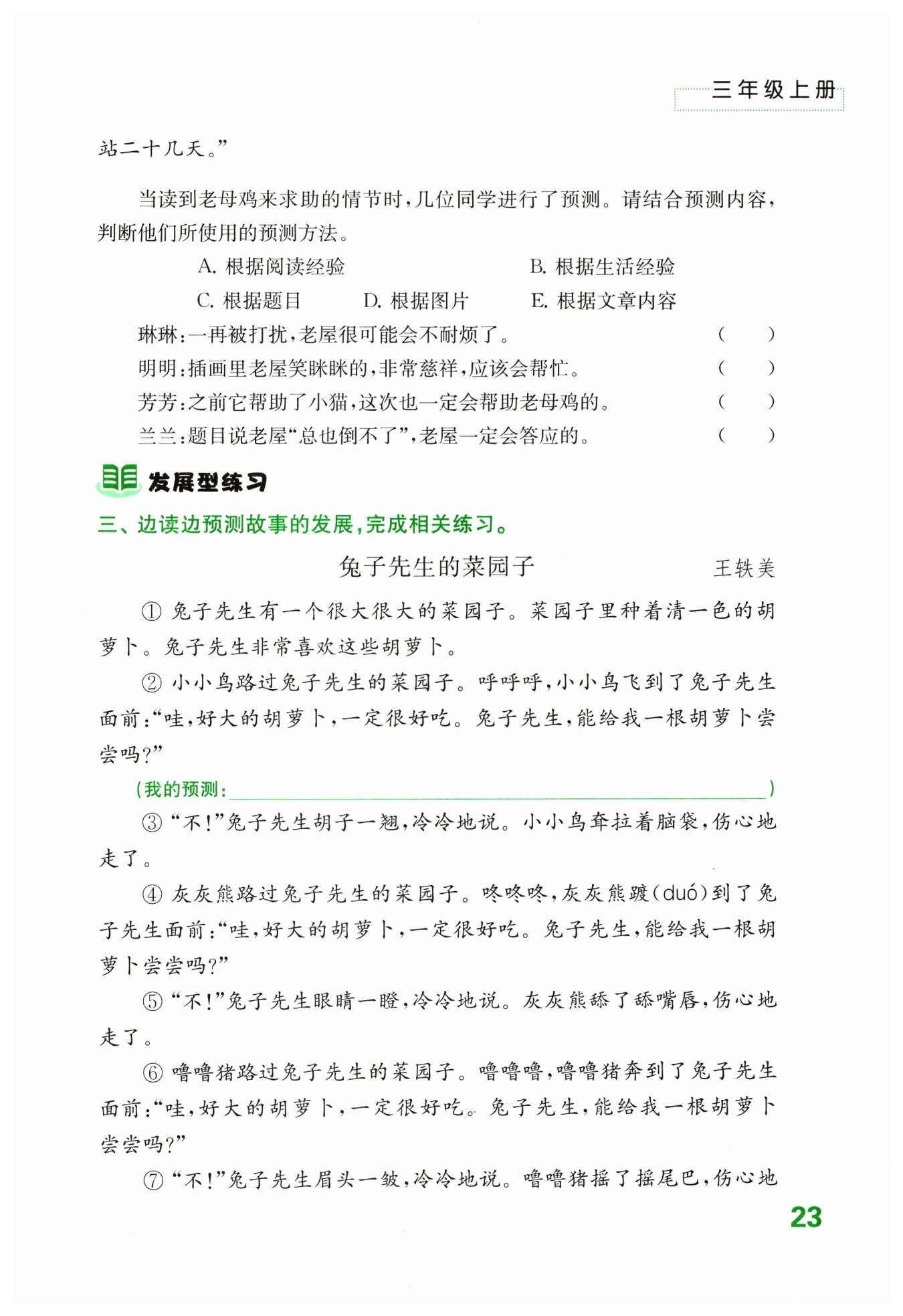 ② (我的預(yù)測(cè):兔子先生會(huì)給小小鳥一根胡蘿卜。)