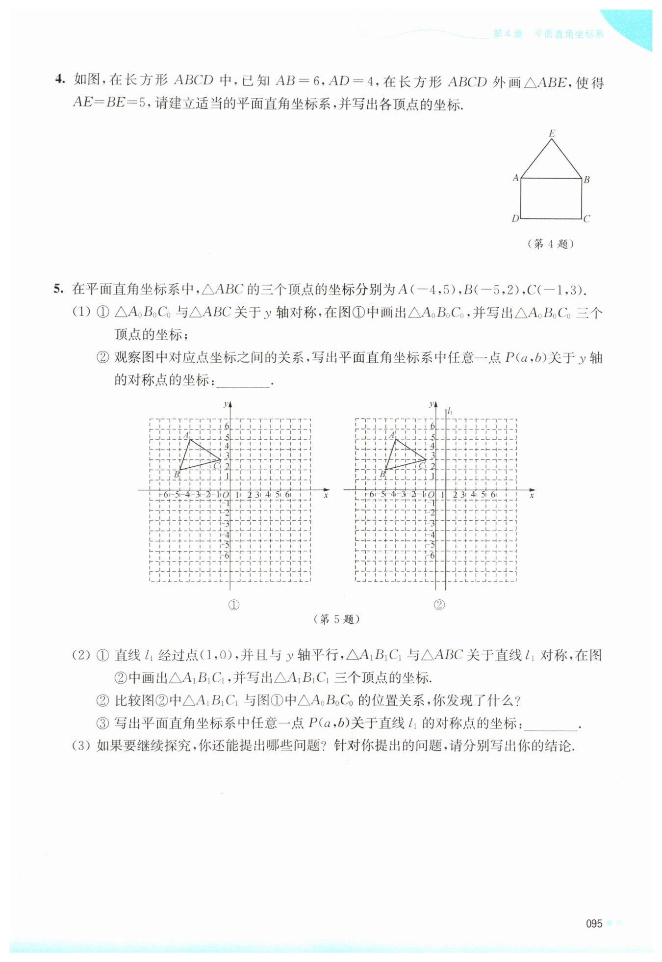 各頂點(diǎn)坐標(biāo)為:A(-3,0),B(3,0),C(3,-4),D(-3,-4),E(0,4)。