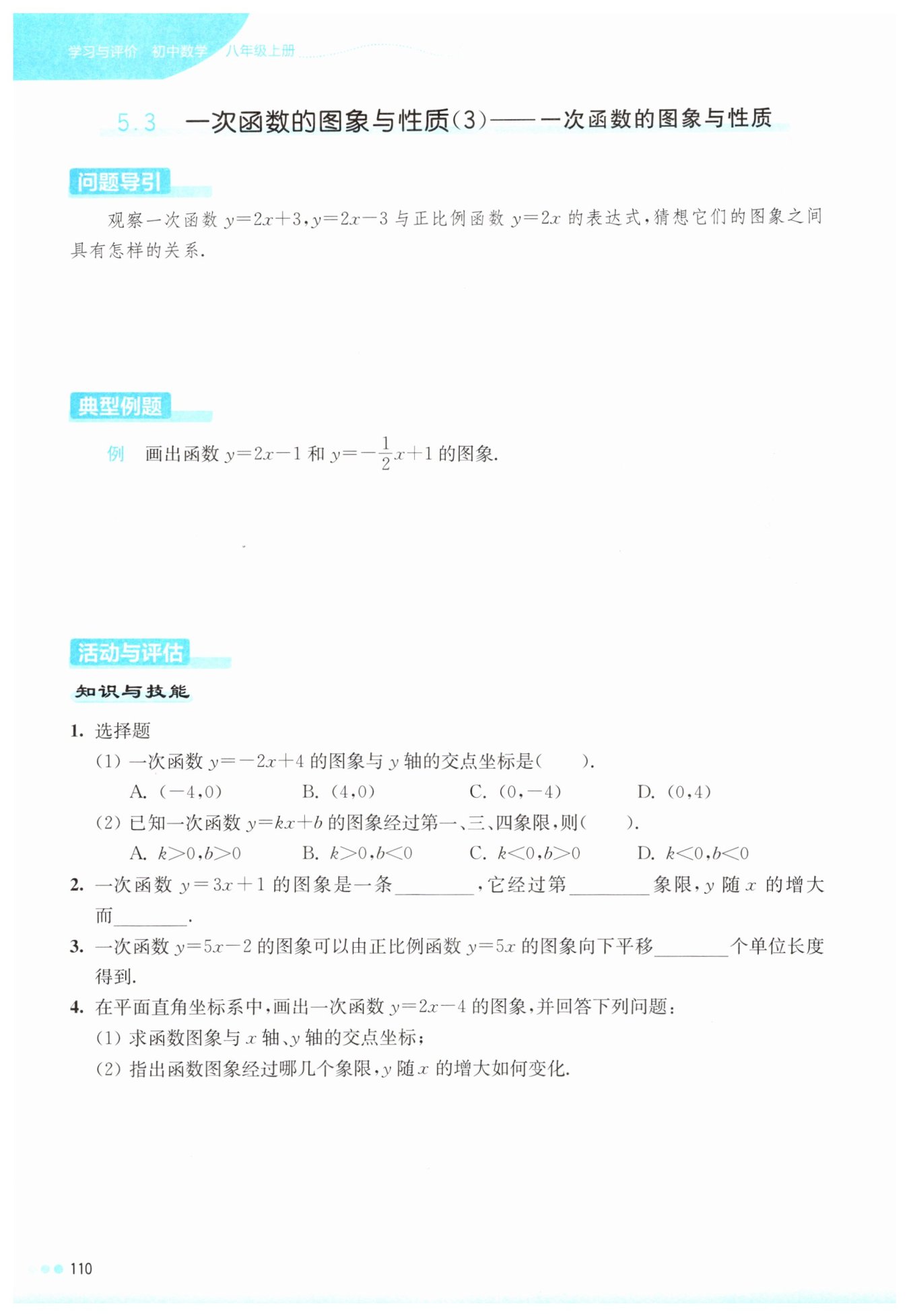 (2) 由于斜率$k=2>0$,函數(shù)圖像將從第三象限指向第一象限,因此函數(shù)圖像經(jīng)過一、三、四象限。