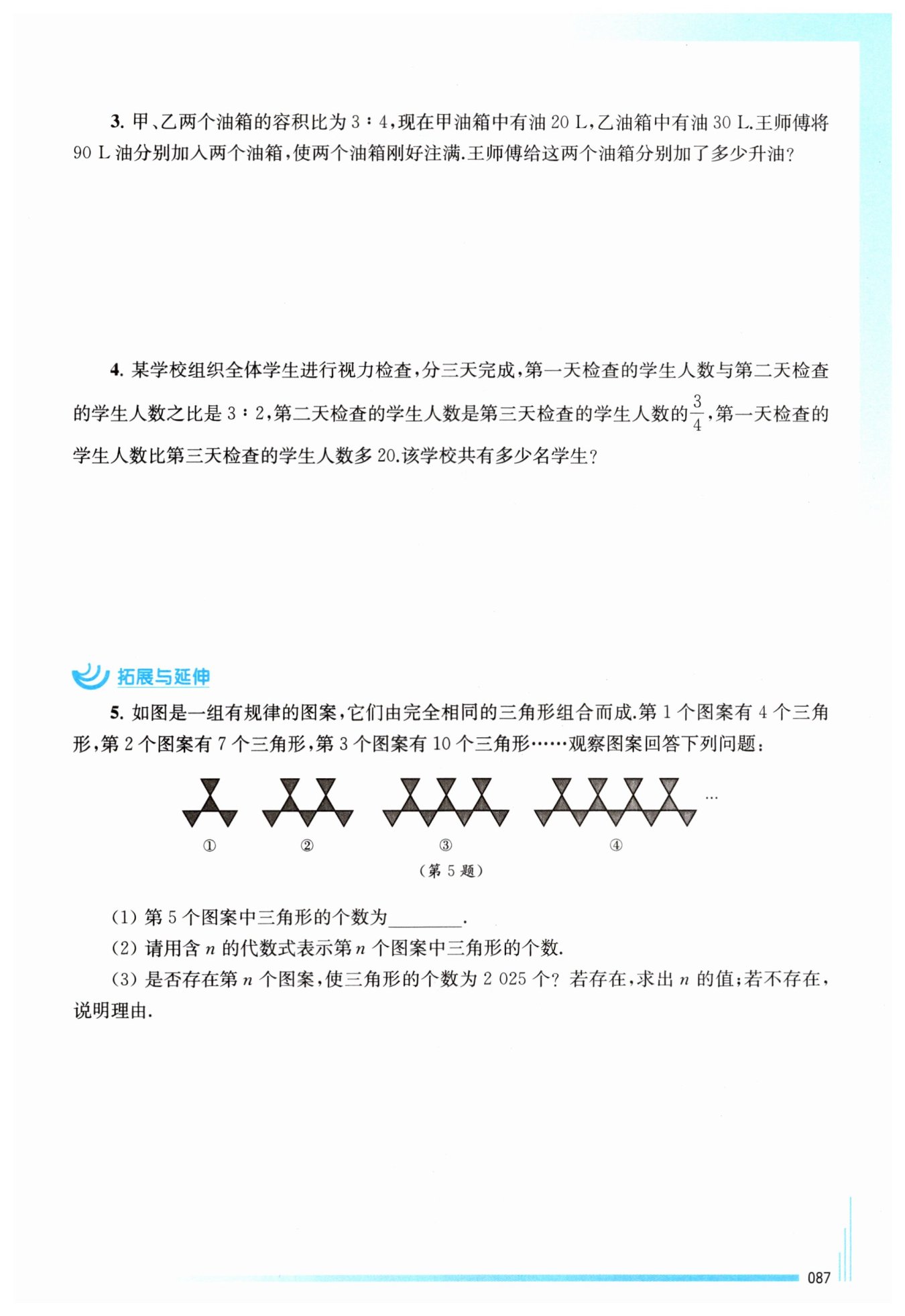 解:設甲油箱的容積為 $3x$ 升,乙油箱的容積為 $4x$ 升。