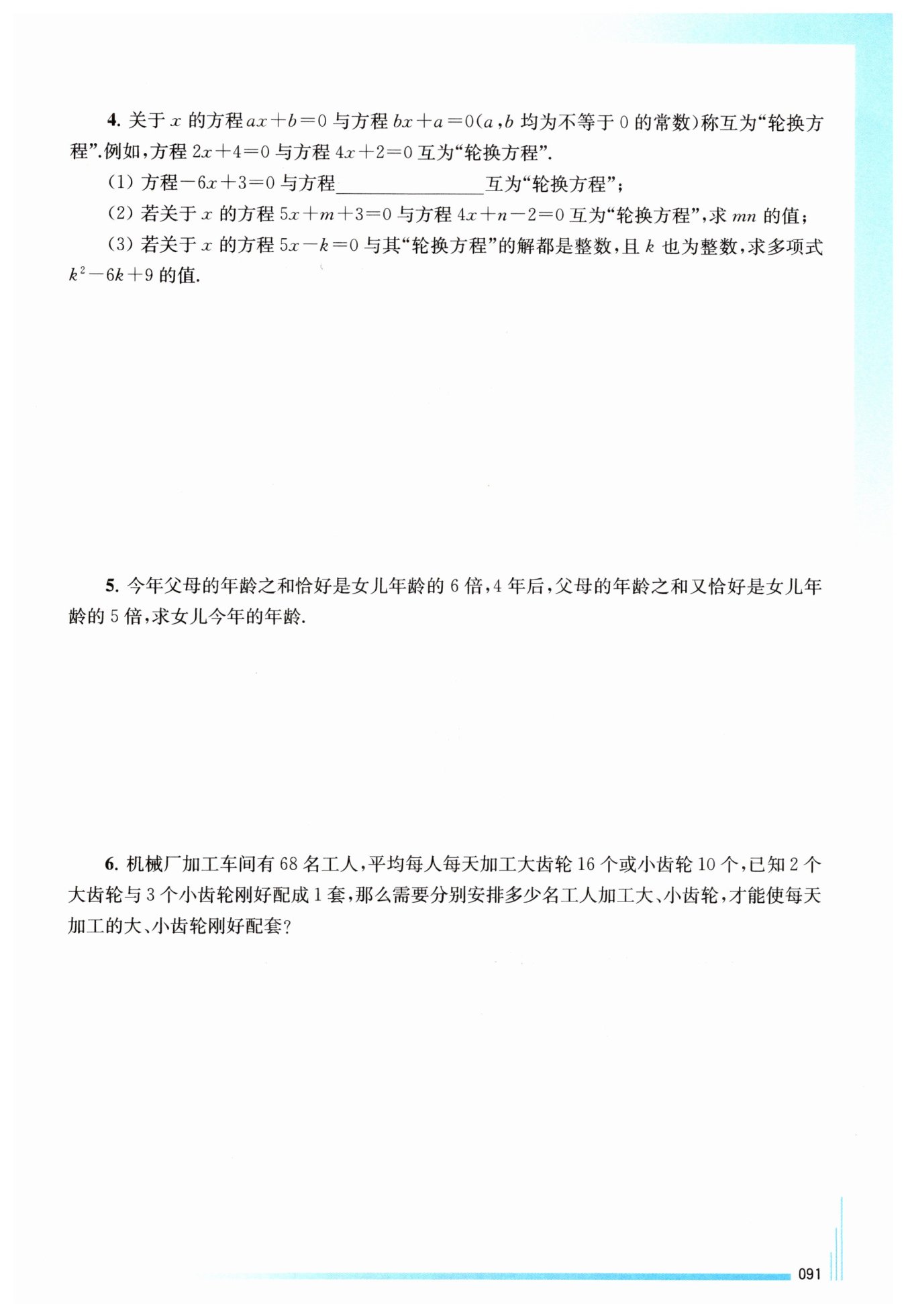 因?yàn)?2$個(gè)大齒輪與$3$個(gè)小齒輪配成$1$套,所以大齒輪數(shù)量的$3$倍等于小齒輪數(shù)量的$2$倍,可得方程: