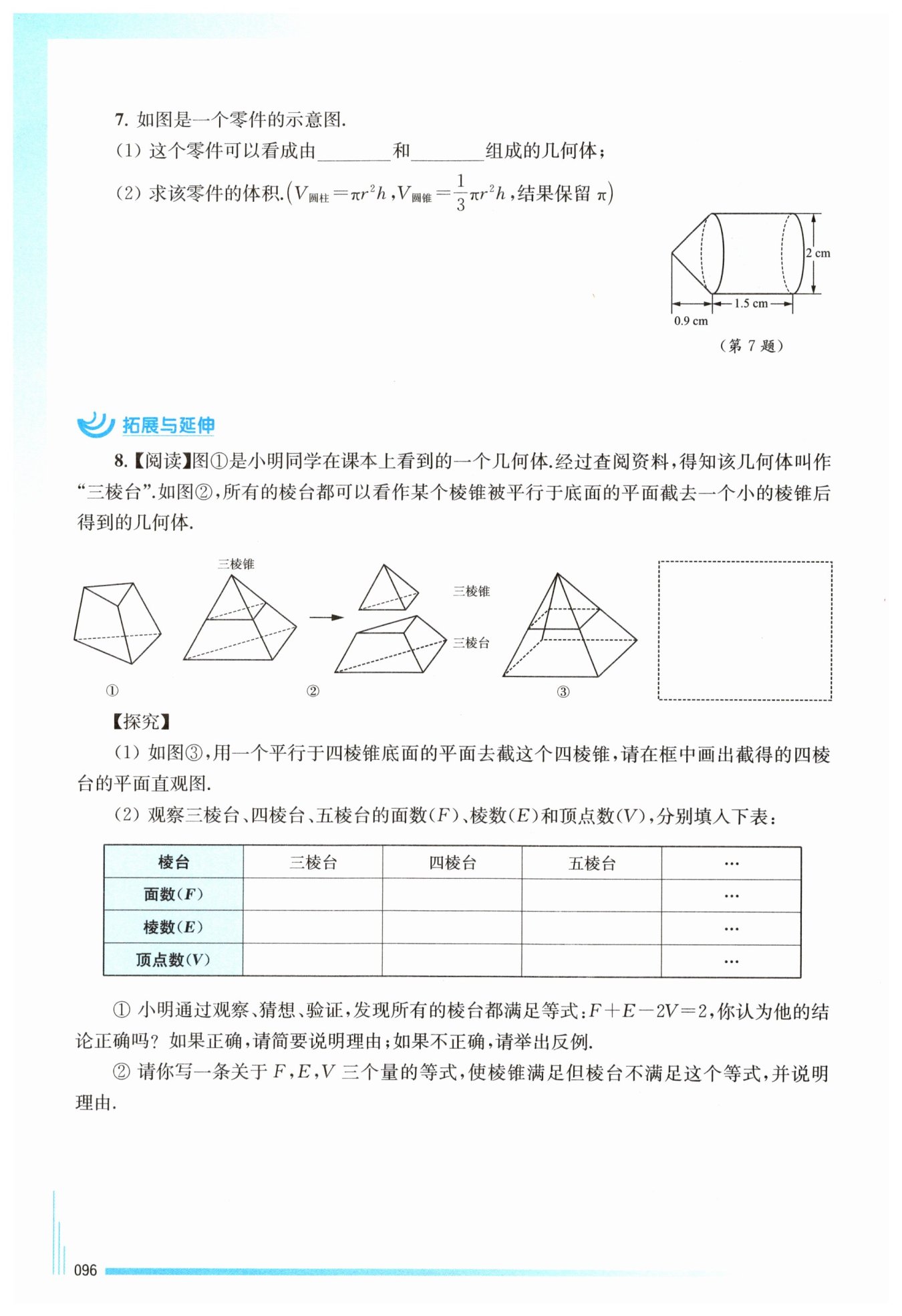 所以所有棱臺都滿足?$F + E - 2V = 2。$?
