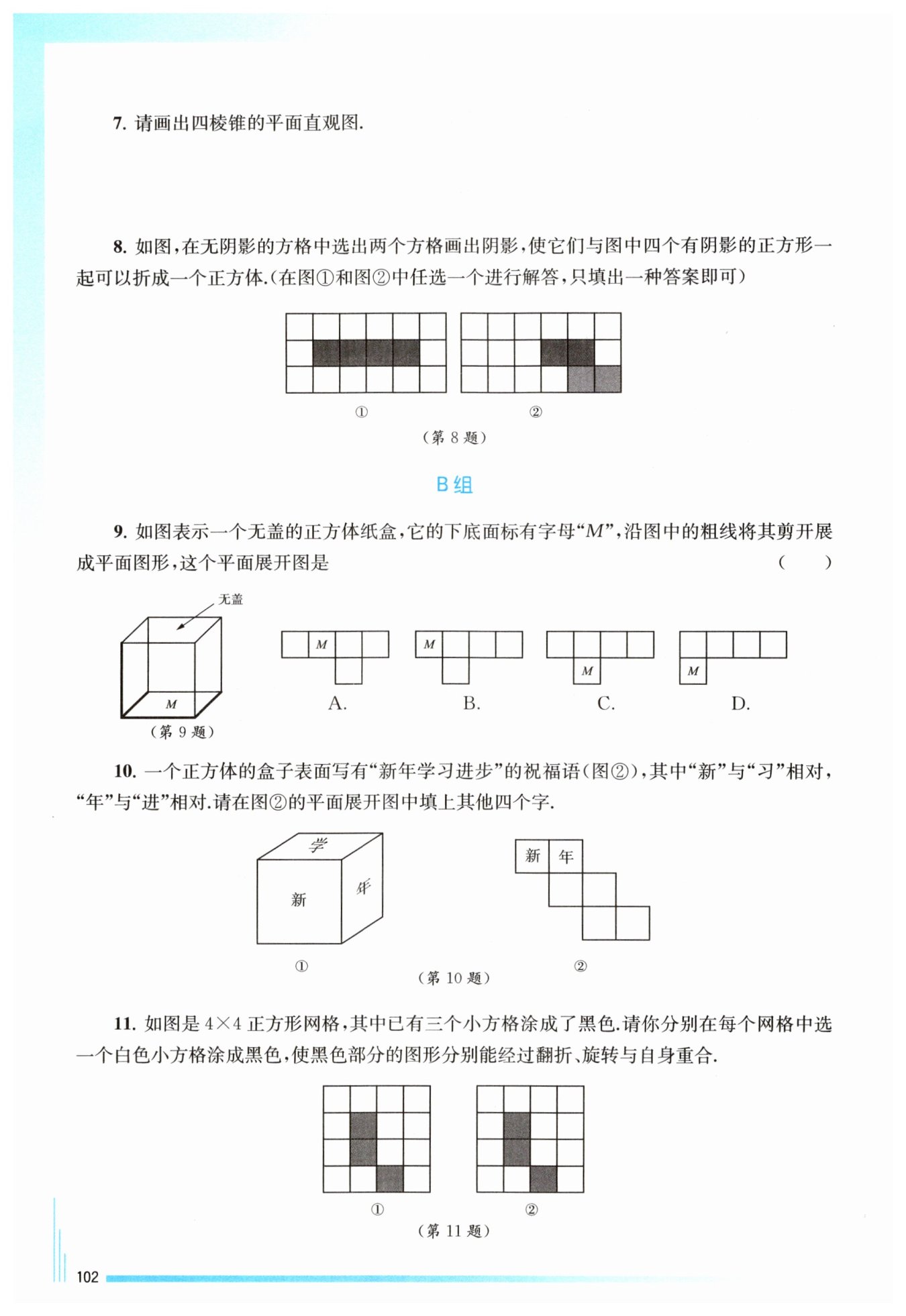 解:該無蓋正方體紙盒下底面標(biāo)有“M”,沿粗線剪開后,展開圖為“一”字排開的四個(gè)面作為側(cè)面,下方單獨(dú)一個(gè)面為底面“M”。觀察選項(xiàng),C選項(xiàng)中“M”位于下方單獨(dú)的面上,符合展開特征。