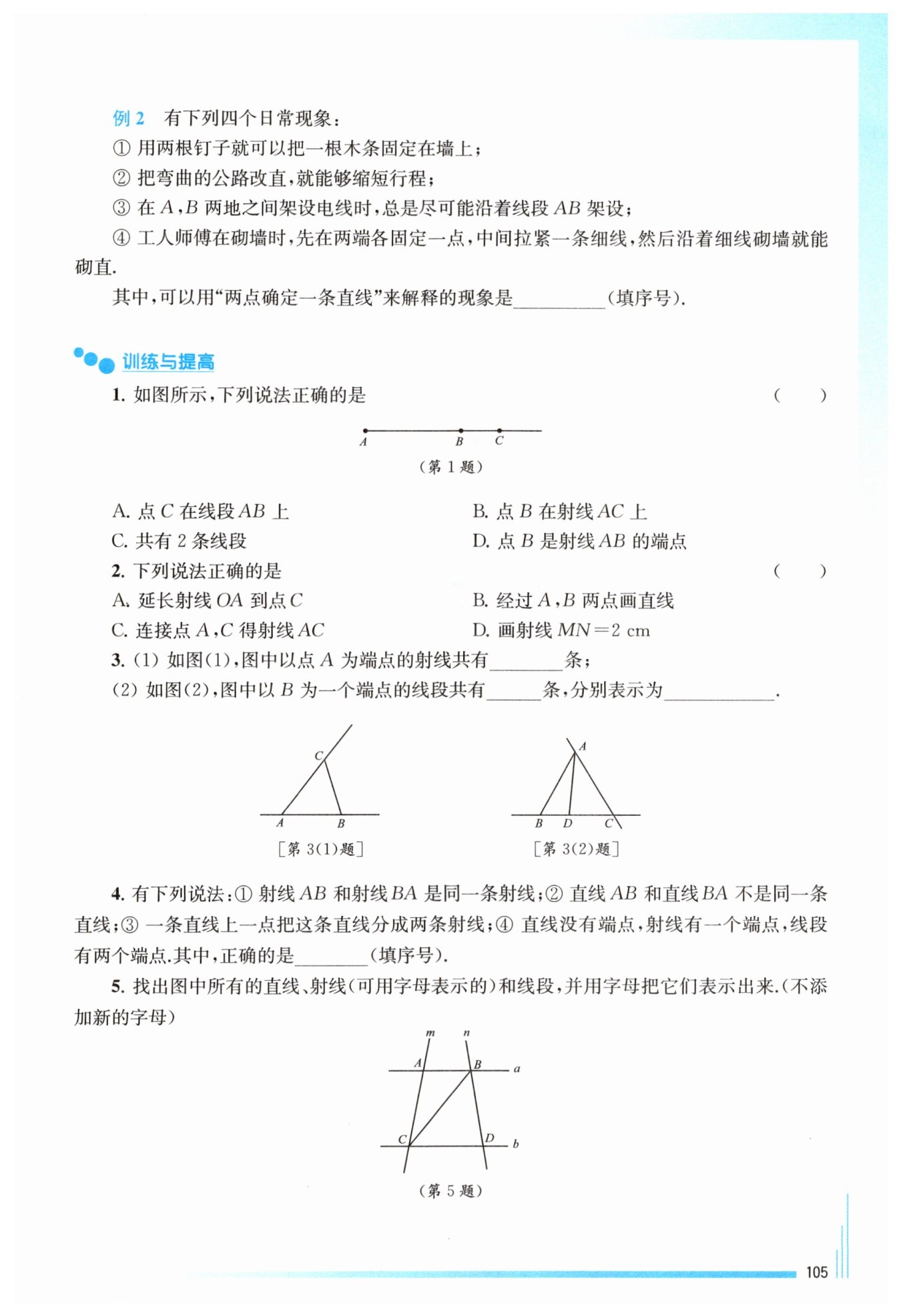 觀察圖形及射線的定義,射線AB的起點(diǎn)是A,經(jīng)過(guò)點(diǎn)B,并向B的方向無(wú)限延伸,所以點(diǎn)B不是射線AB的端點(diǎn),D選項(xiàng)錯(cuò)誤。