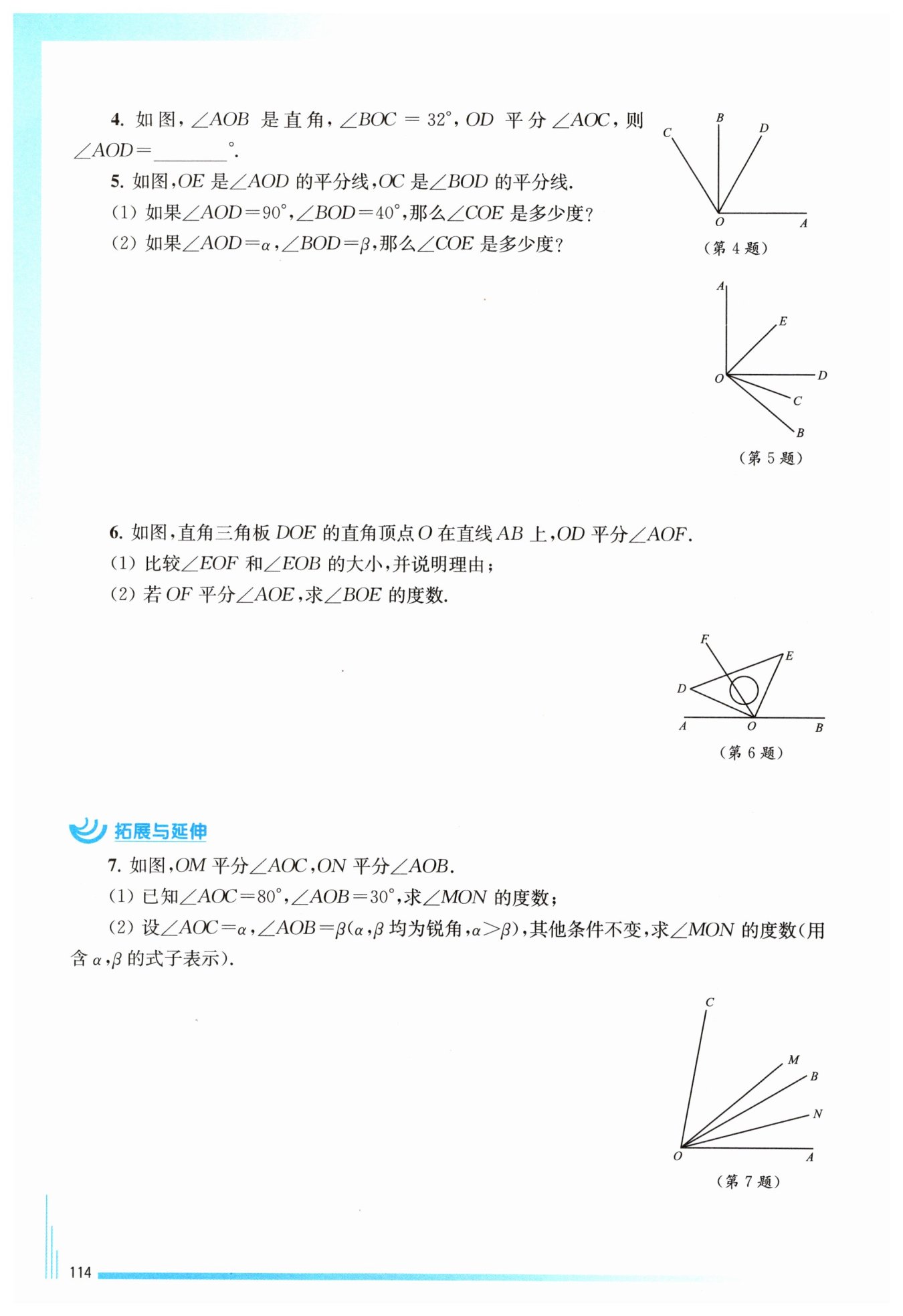 解:?$(1)$?因?yàn)?$OE$?是?$∠AOD$?的平分線,?$∠AOD=90°,$?