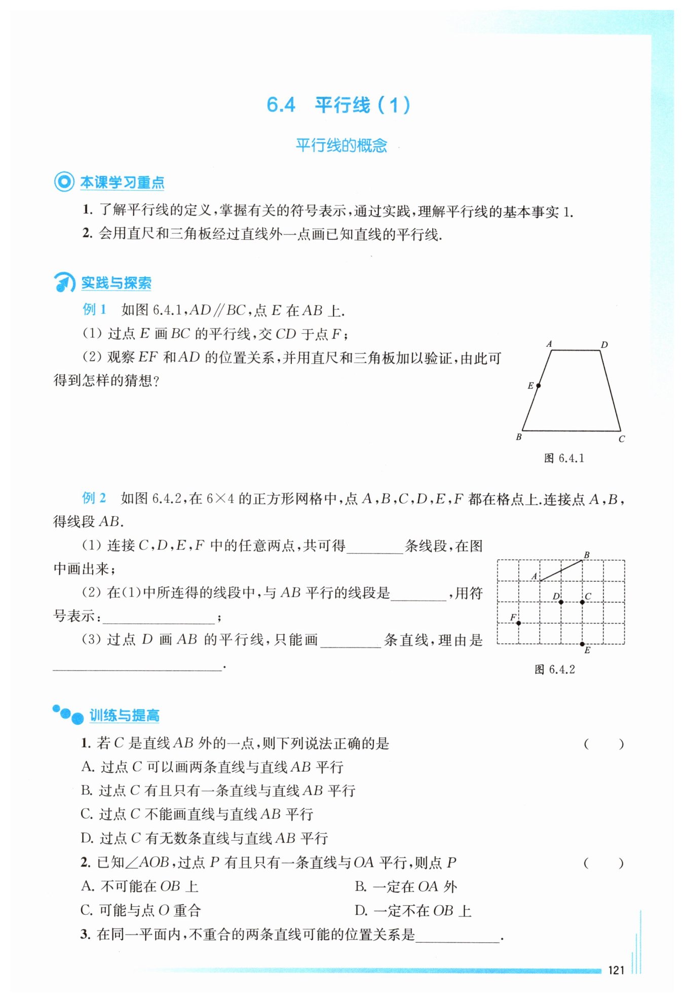 這個(gè)問(wèn)題考查的是平行線(xiàn)的定義和性質(zhì)。根據(jù)平行線(xiàn)的定義,通過(guò)直線(xiàn)外的一個(gè)點(diǎn),有且僅有一條直線(xiàn)與該直線(xiàn)平行。