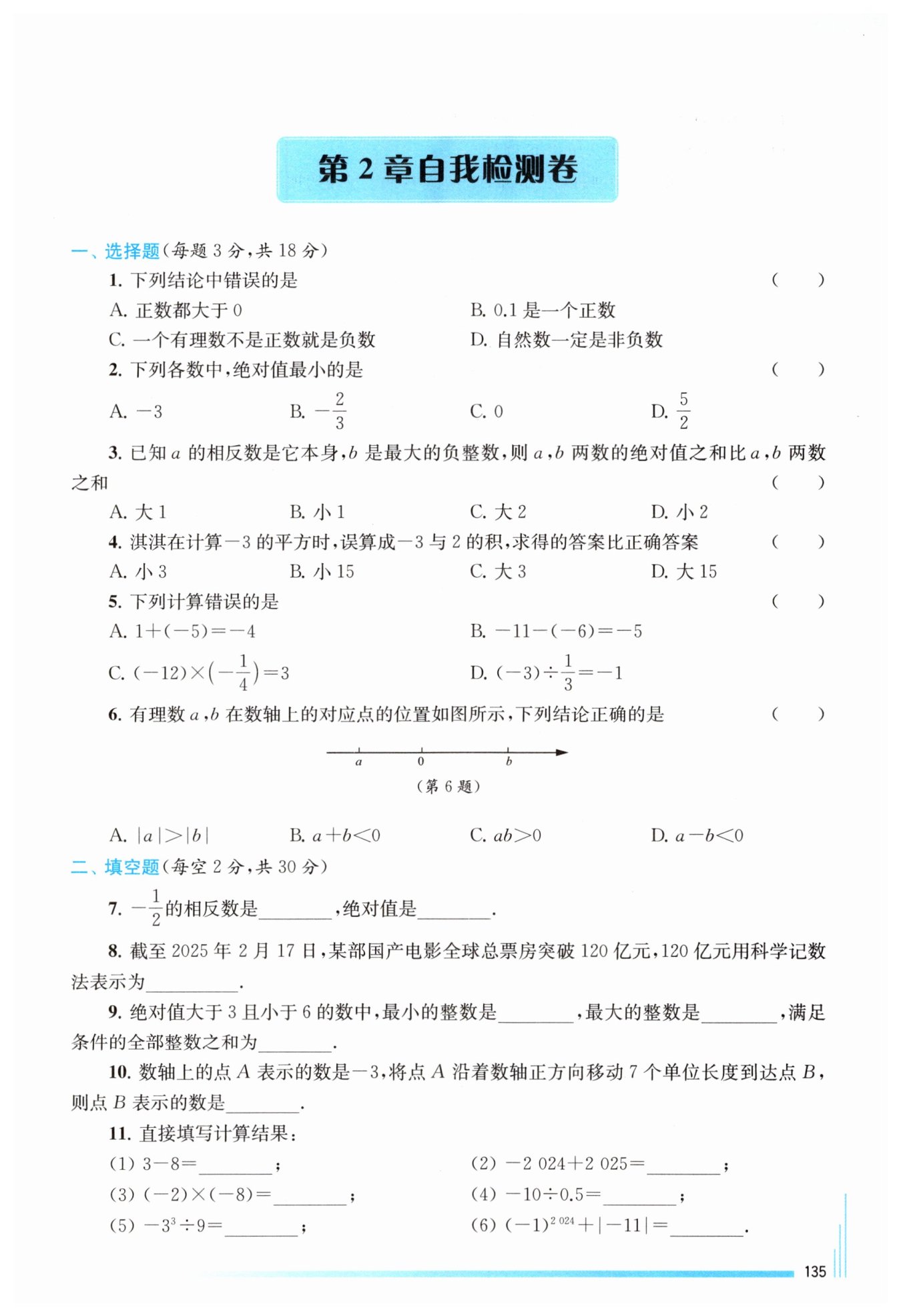 由于淇淇的答案是-6,而正確答案是9,所以淇淇的答案比正確答案小了15。
