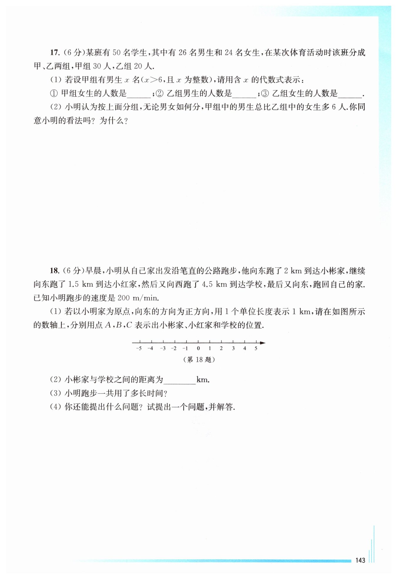 (1)根據(jù)題意,小明從家出發(fā),向東為正方向,用1個單位長度表示1km。