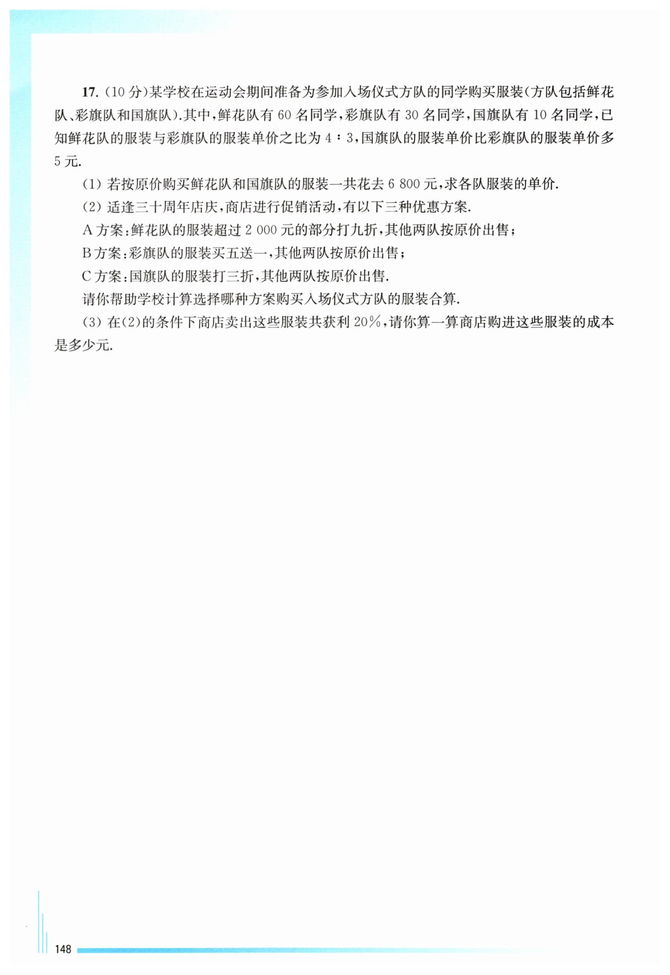 答:?$(1)$?鮮花隊、彩旗隊、國旗隊服裝單價分別為?$100$?元、?$75$?元、?$80$?元;